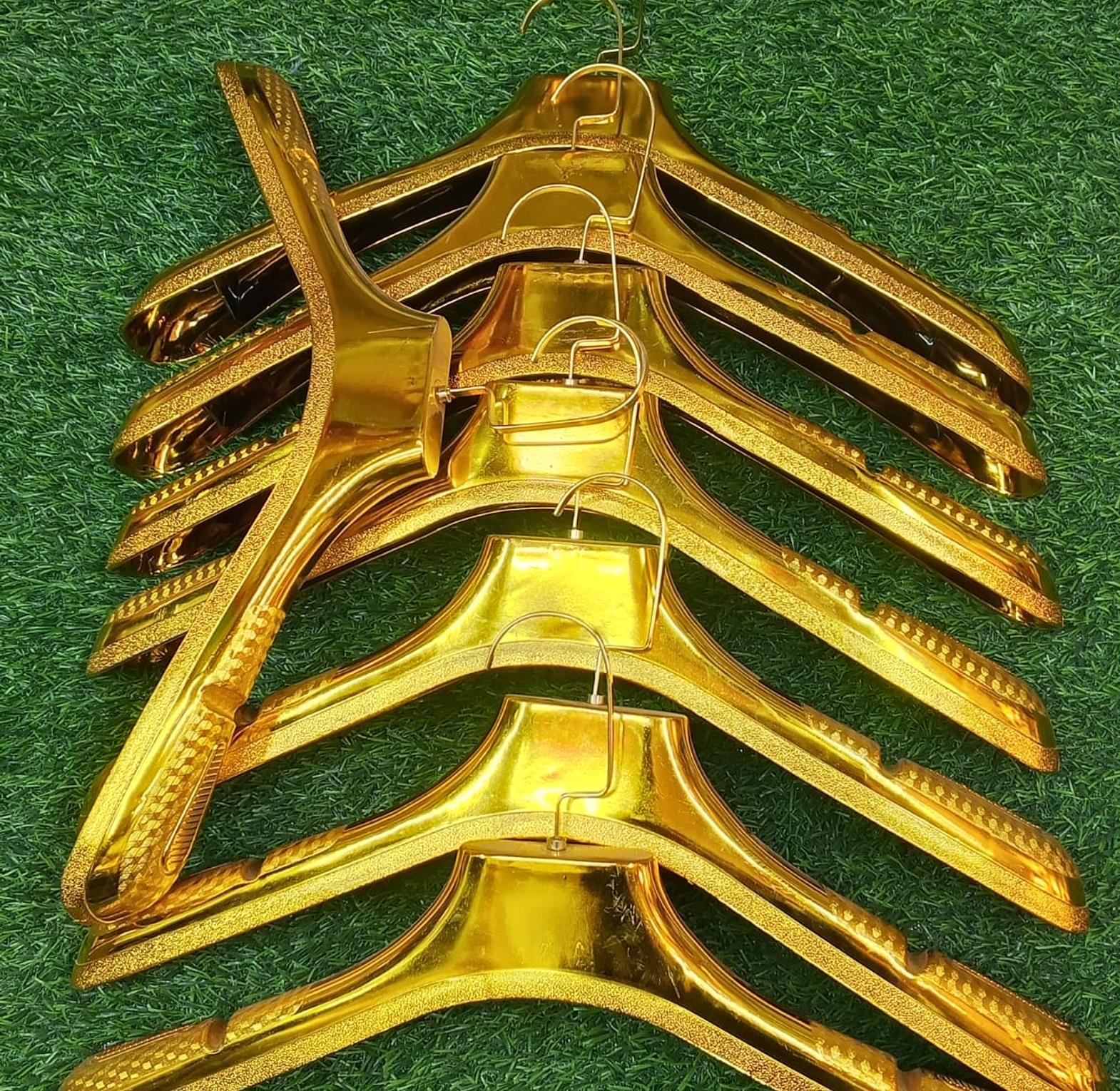 These hangers are typically crafted from high-quality, durable plastic with a metal hook. They are designed to be lightweight yet strong enough for long-lasting use. The design often includes features to prevent clothes from slipping and to maintain the garment's shape.
