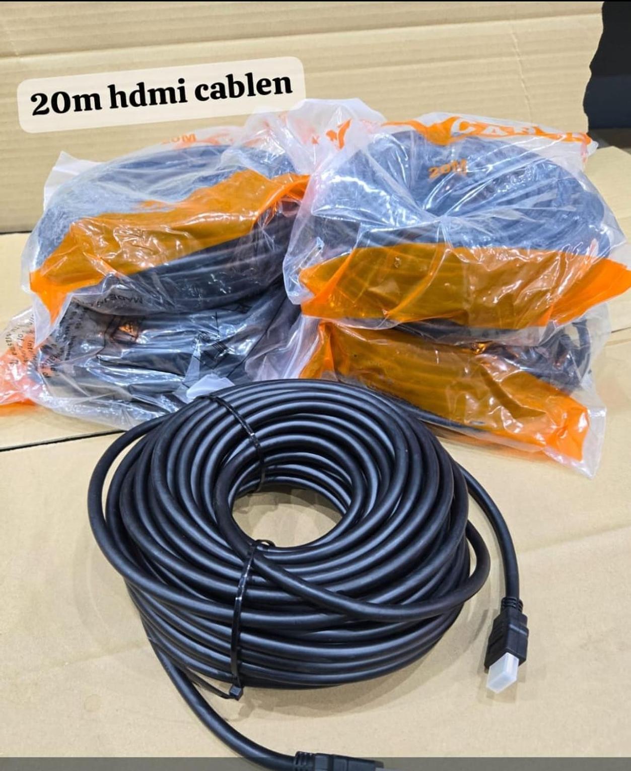 Name: 20m HDMI Cable Description: This is a High-Definition Multimedia Interface (HDMI) cable, 20 meters in length, designed for transmitting high-definition video and audio signals between compatible devices. It typically features standard HDMI male-to-male connectors