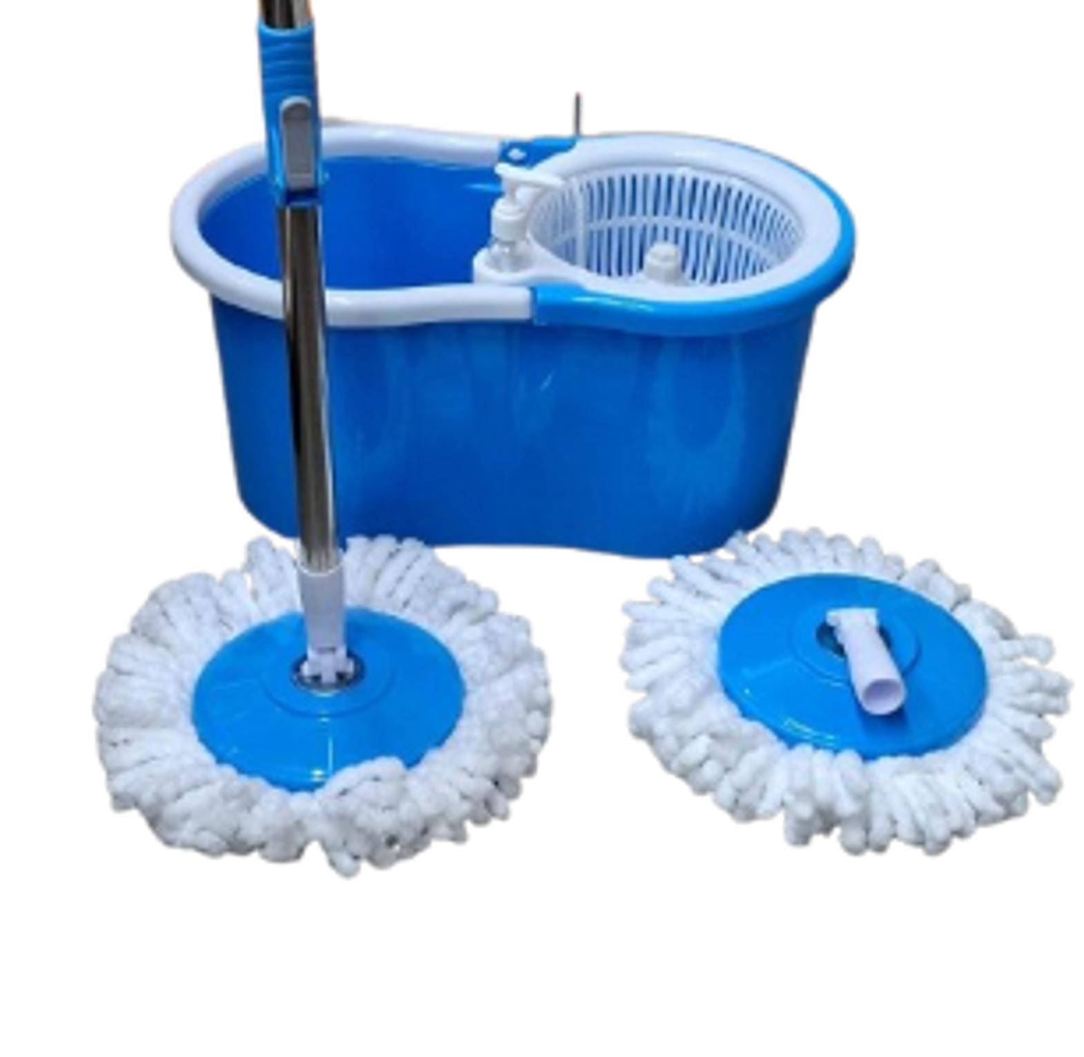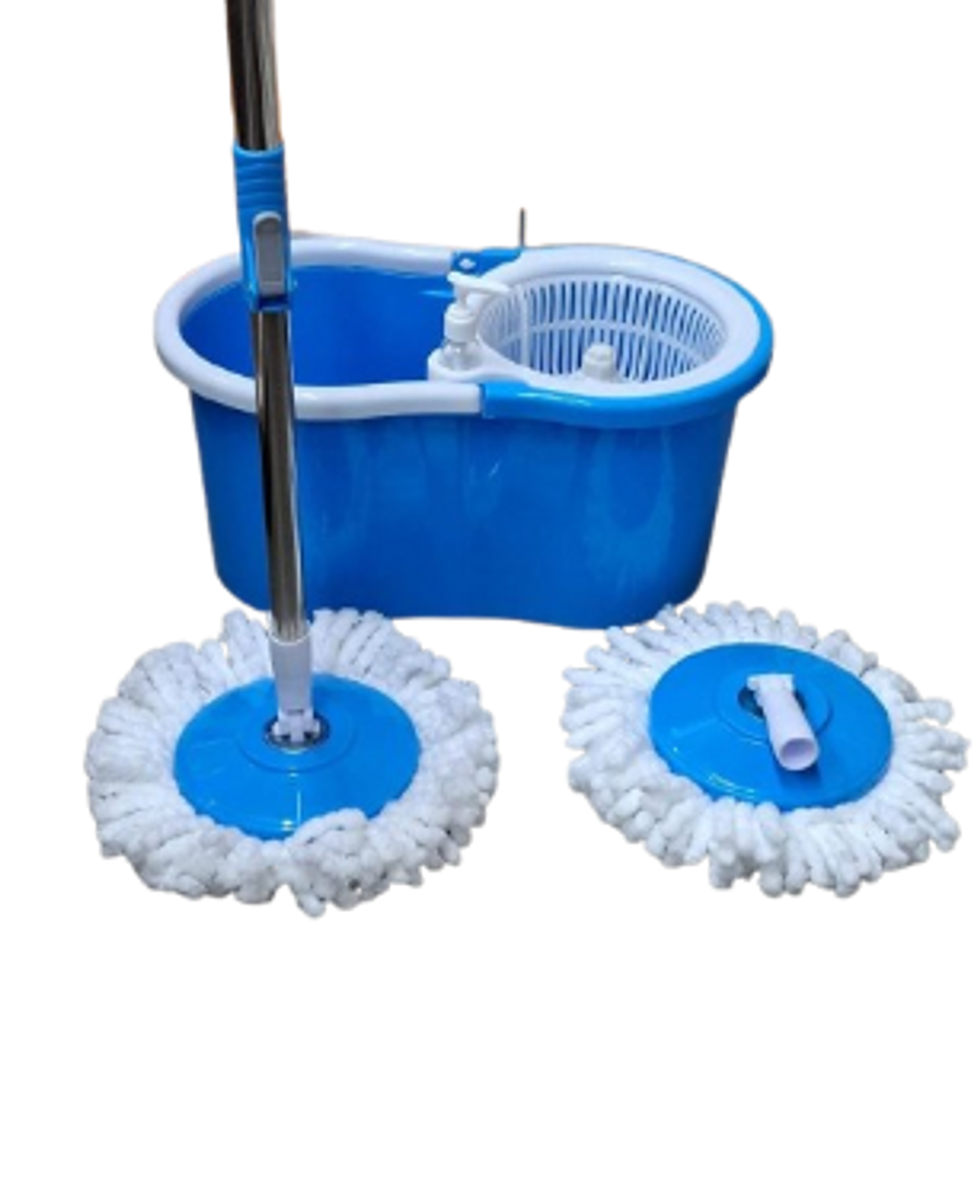 The spin mop system allows for both wet and dry cleaning applications, effectively picking up dust, hair, and oil. The key feature is the 360-degree rotating mop head, which provides flexibility to clean hard-to-reach areas like corners and under furniture. The bucket includes a built-in wringer mechanism, often using a push-and-pull spring action via the mop handle, which spins the mop head to dry it without requiring manual wringing.