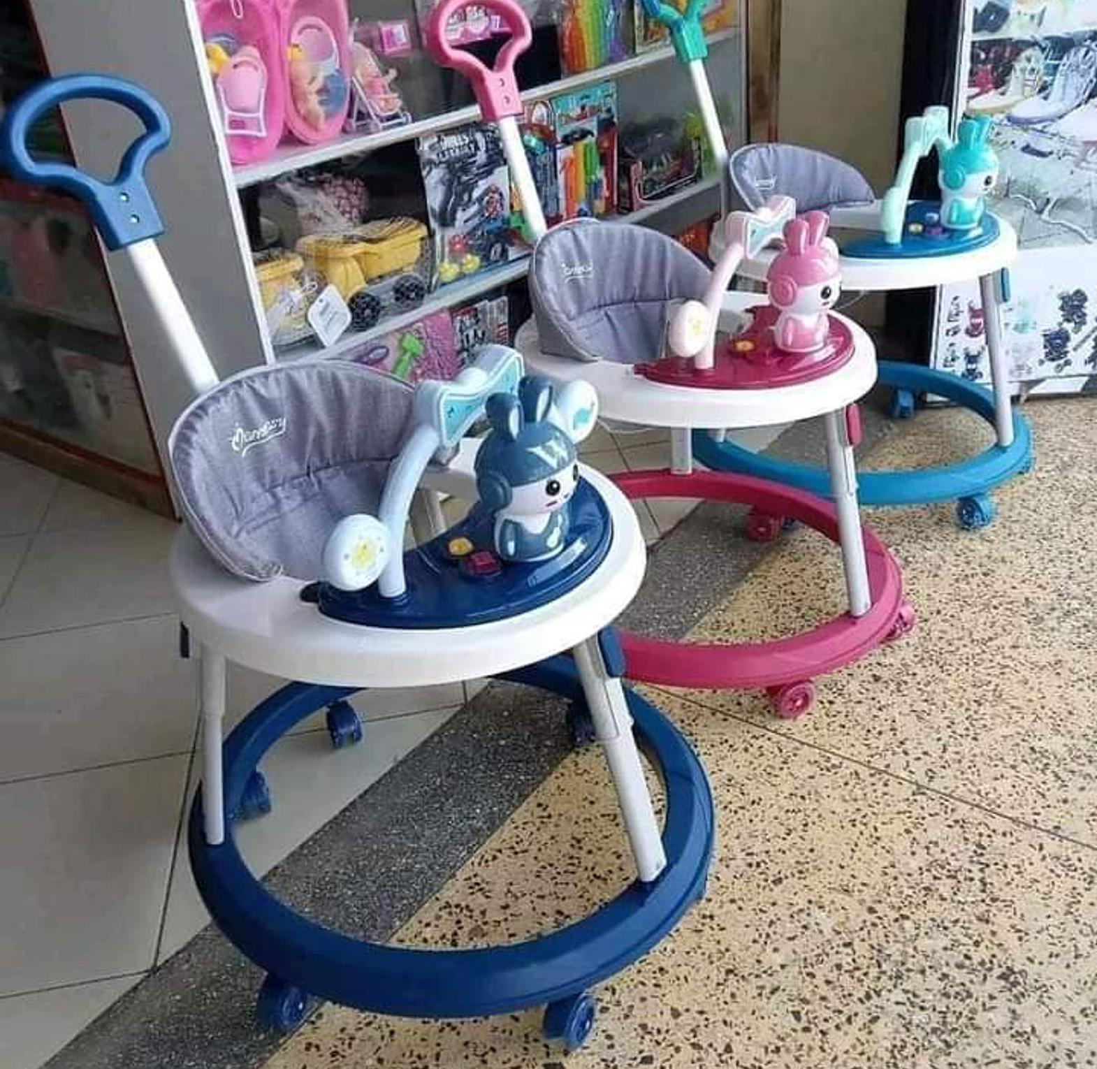 Type: Baby walker with push handle and melody function Colors: Pink and blue options available Seat: Soft and comfortable padded seat for support Toy Panel: Interactive toys to keep babies entertained Handle: Ergonomic push handle for parental control Wheels: Smooth-rolling wheels for easy movement Music Feature: Built-in melody function for added fun Safety: Sturdy frame to provide stability and security Ideal For: Assisting babies in learning to walk confidently.