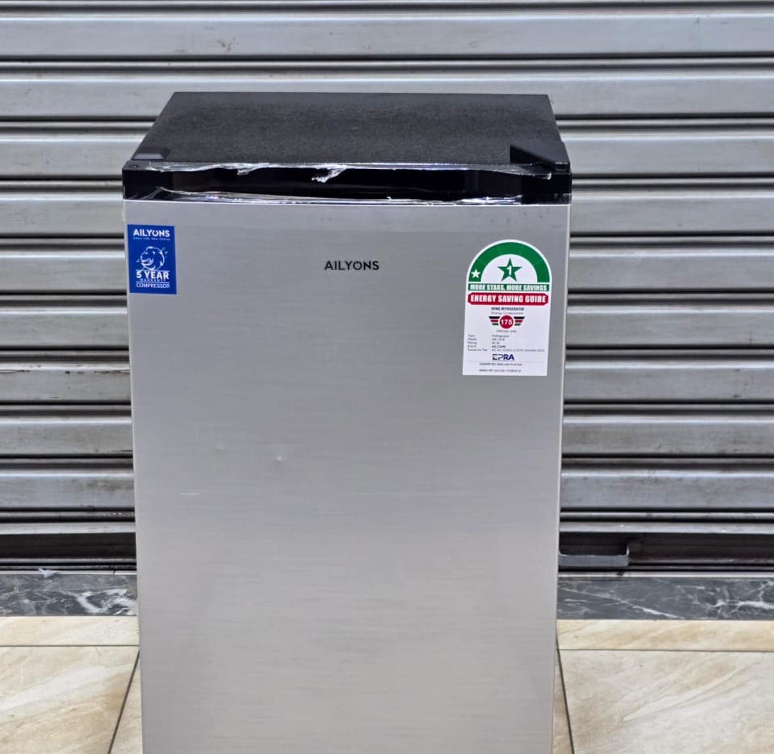 This refrigerator is a compact, stylish, and energy-efficient cooling solution designed for small spaces such as apartments, offices, or dorm rooms. It features a sleek, modern aesthetic with a silver finish and a black top. The design includes a freezer compartment for ice and frozen foods, adjustable shelves, door racks for beverages, and a vegetable crisper drawer.