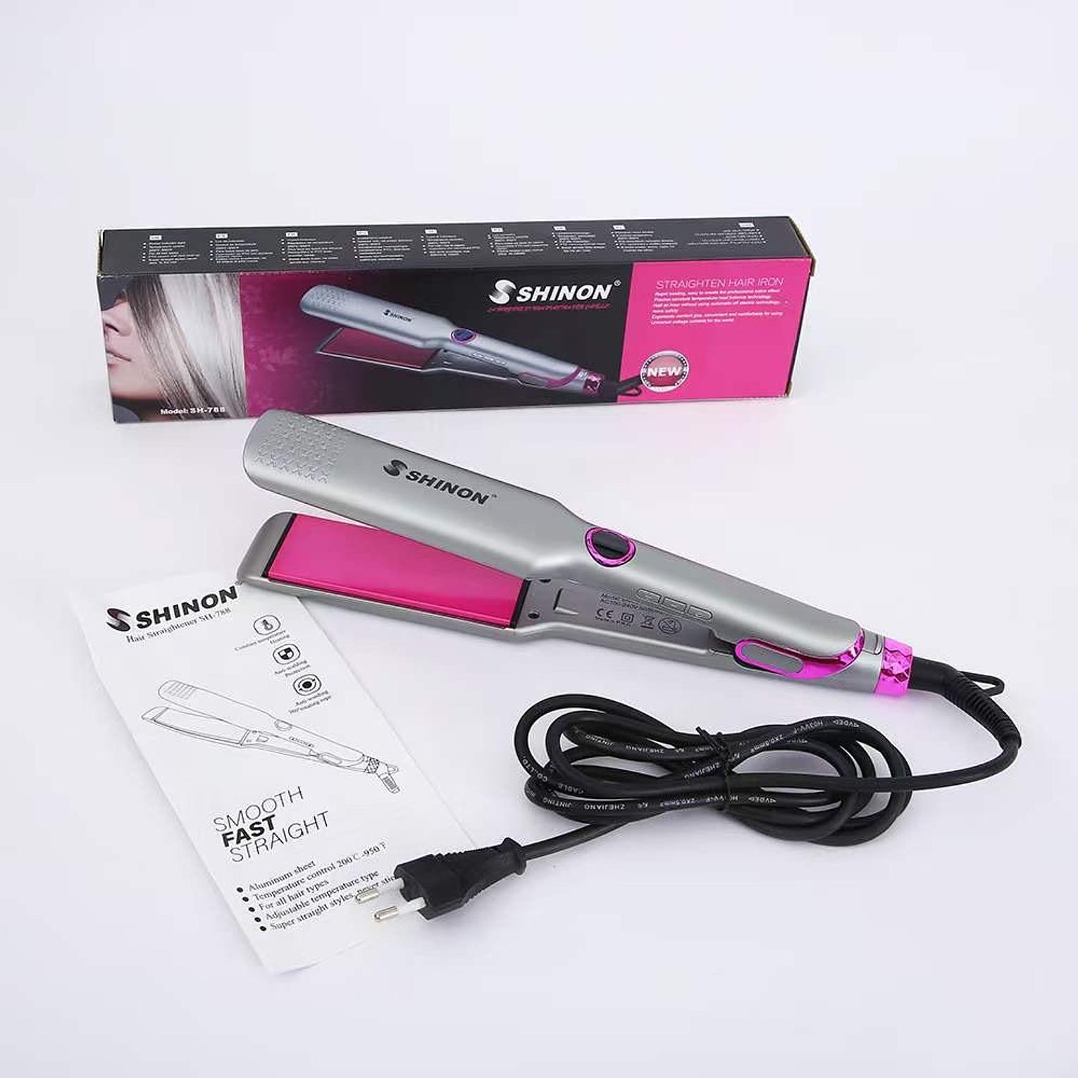 The item in the image is a Shinon SH-788 Hair Straightener, which is a hair styling tool designed for straightening hair. It features an adjustable temperature control ranging from 200°C to 950°C, suitable for all hair types. The straightener also has a ceramic coating and a 360-degree swivel cord. It is designed for smooth, fast, and straight styling.