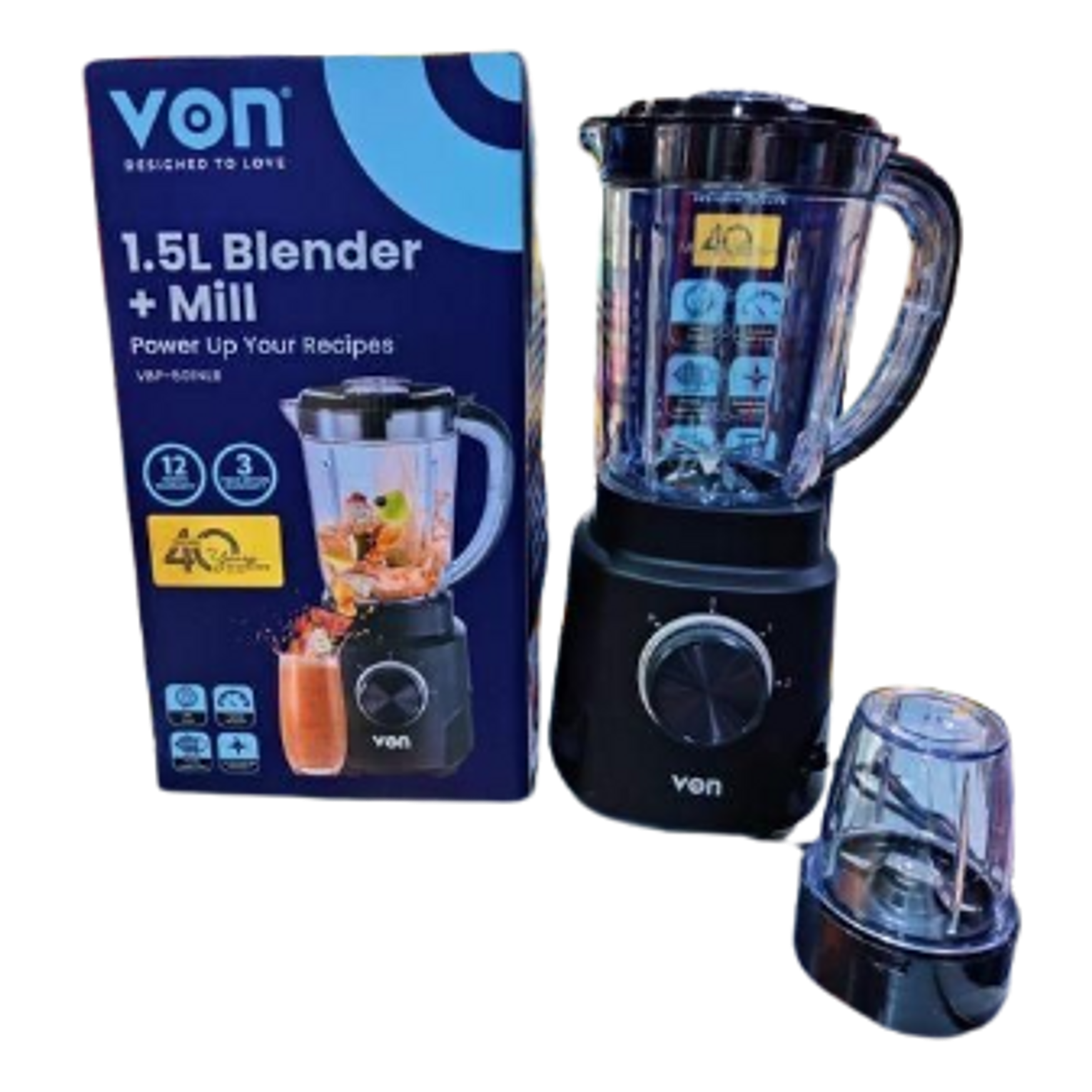 Blender for fruits, vegetables, and ice crushing Grinder for milling spices, coffee beans, and nuts 2 speeds and pulse function