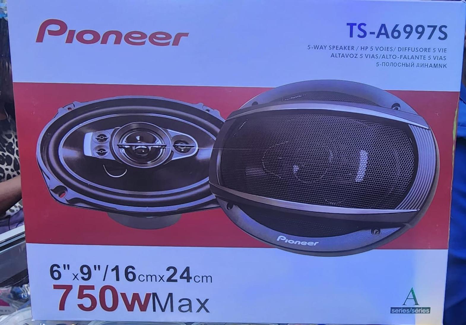 These are 5-way coaxial speakers from Pioneer's A-Series, designed for car audio systems. They are built to deliver high-resolution audio with features like bass boost and surround sound for an immersive listening experience.