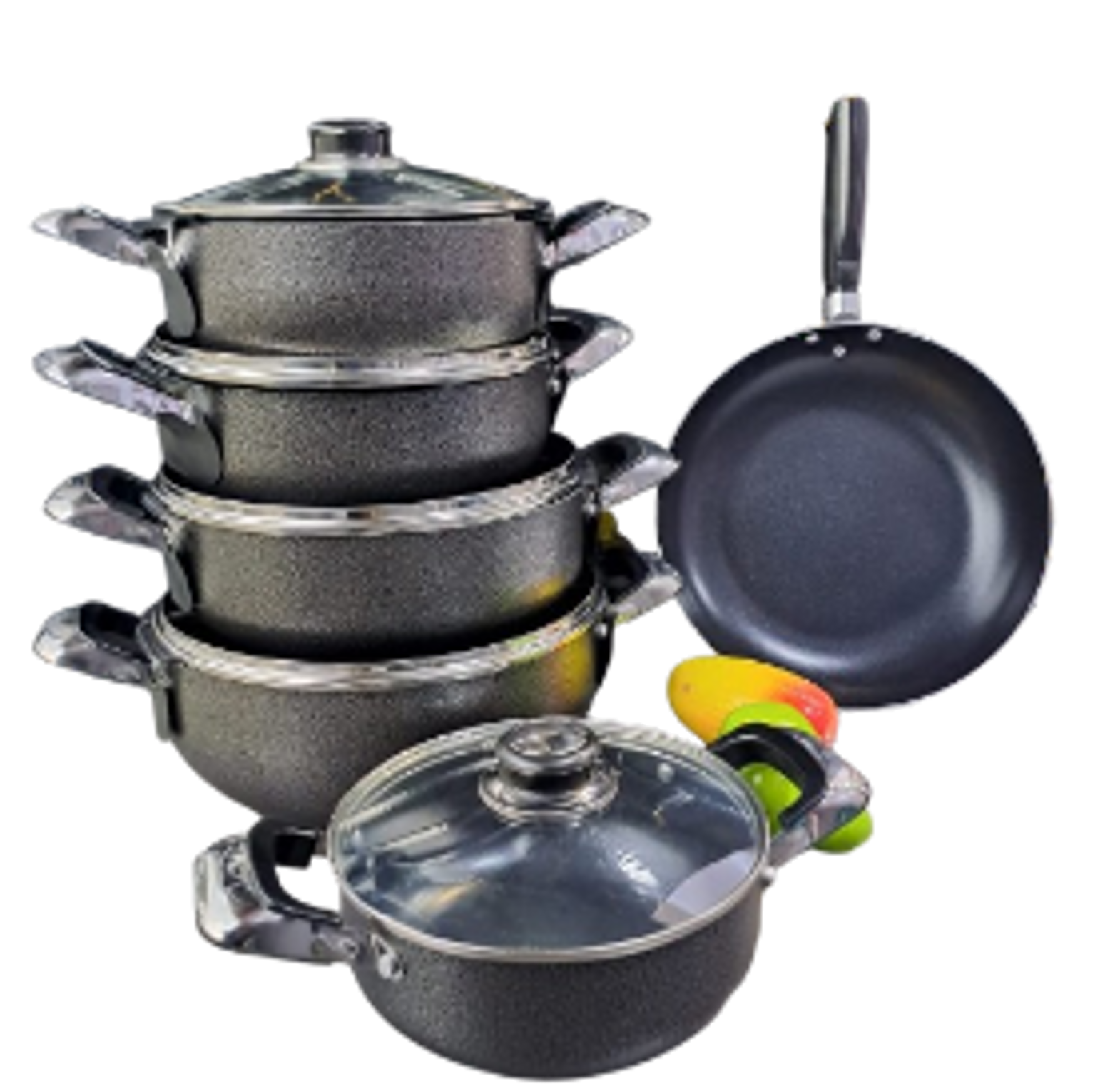 Durable cooking pots provides long lasting superior Non-stick performance and has different sizes for different cooking needs hence you can cook different delicacies. It is light and easy to maintain with protective layer added to make it less reactive and more scratch resistant. It also has glass lids makes viewing food easy from start to finish. It is both a healthy and an Eco friendly way to cook, suitable for home and can be used for long time. Furthermore it spreads heat evenly and is energy efficient, and makes it easier to regulate heat so the food does not burn and stick.