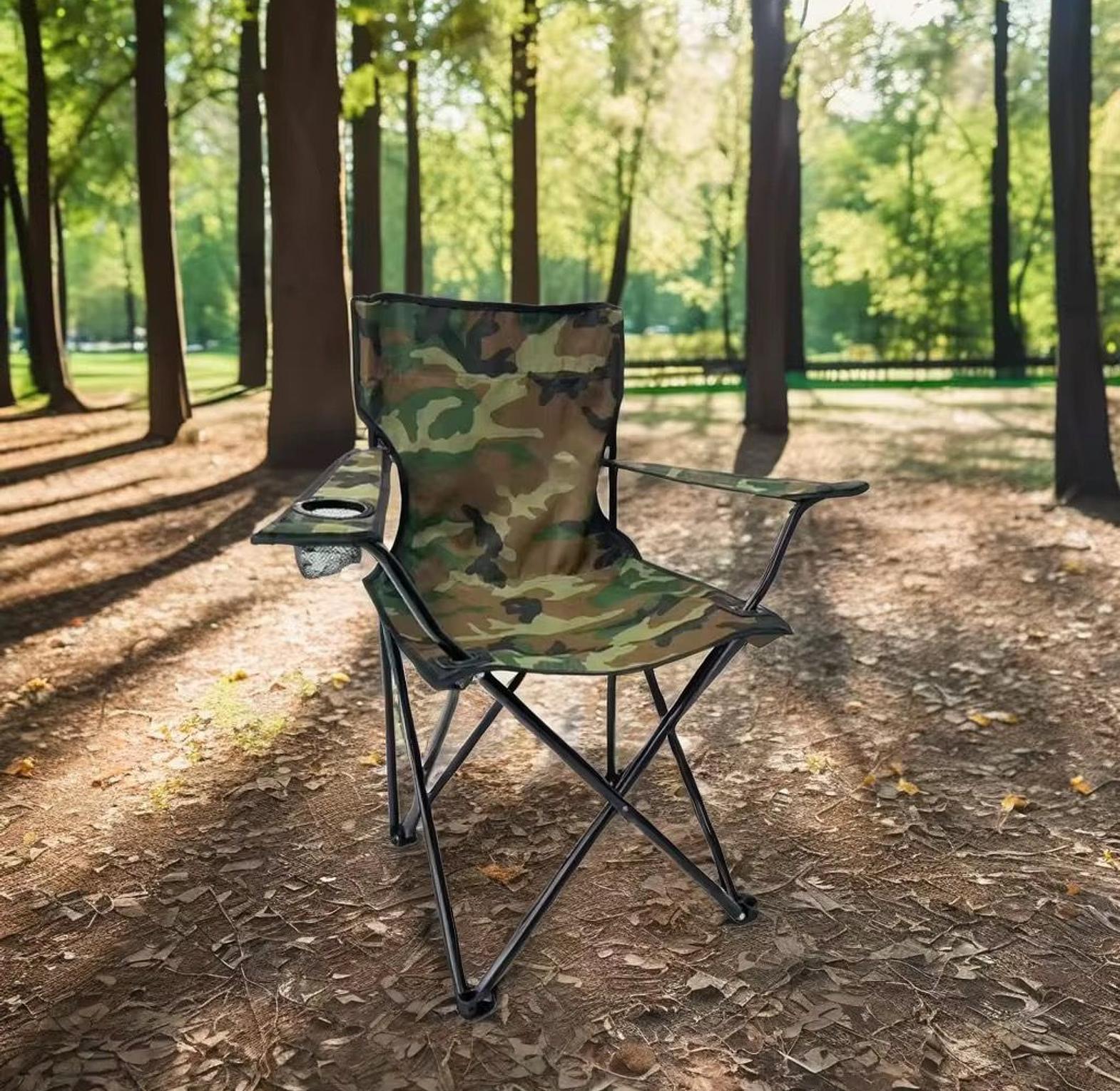 This type of chair features a tough tubular steel frame that folds in a scissor style for stability and strength. The seat and backrest are typically made from durable, waterproof Oxford cloth, often in a camouflage pattern/Plain color. It is designed for portability and comes with an included carry bag with a shoulder strap for convenience.