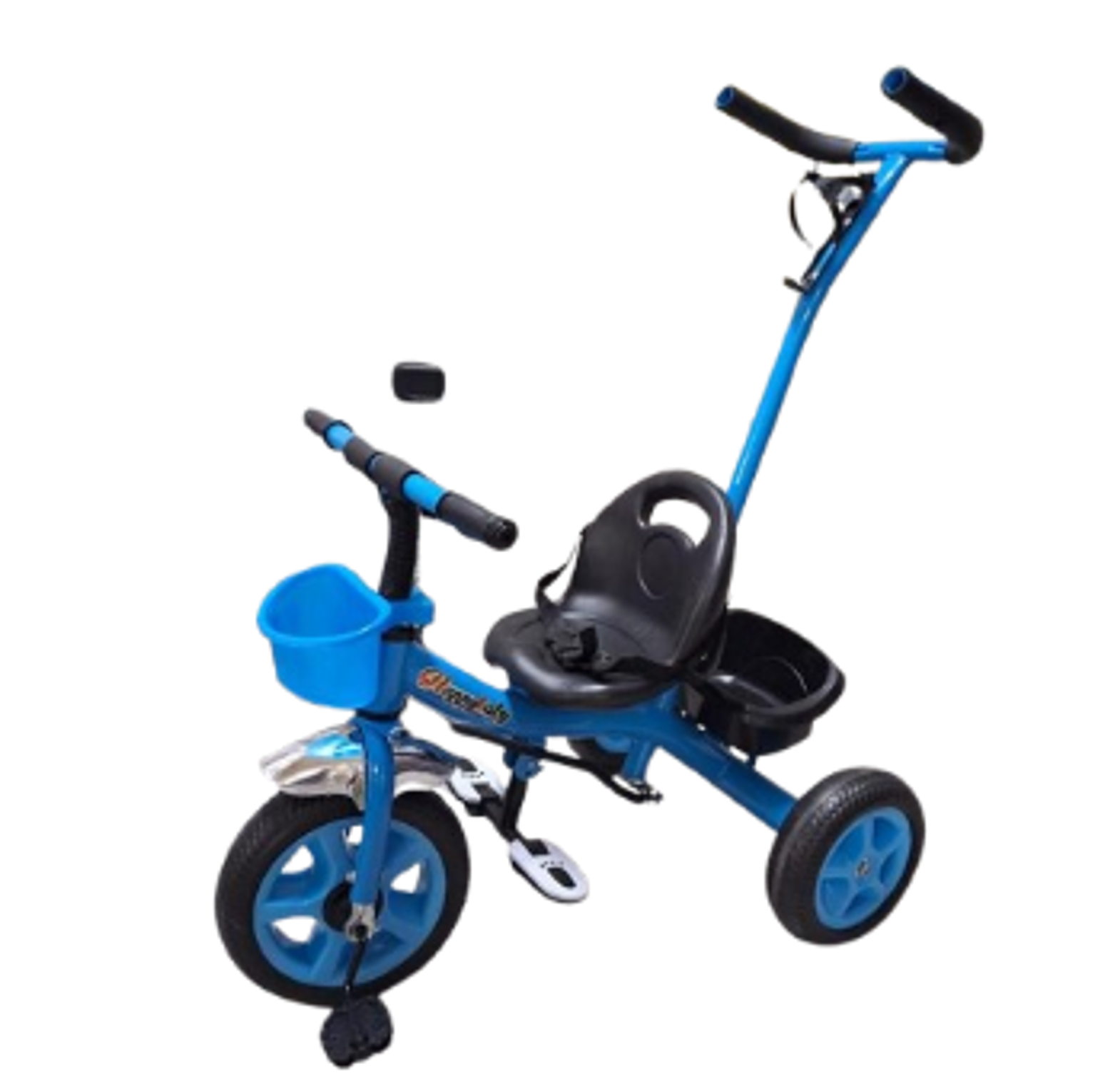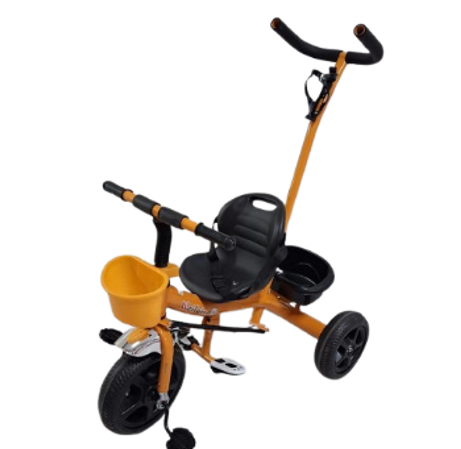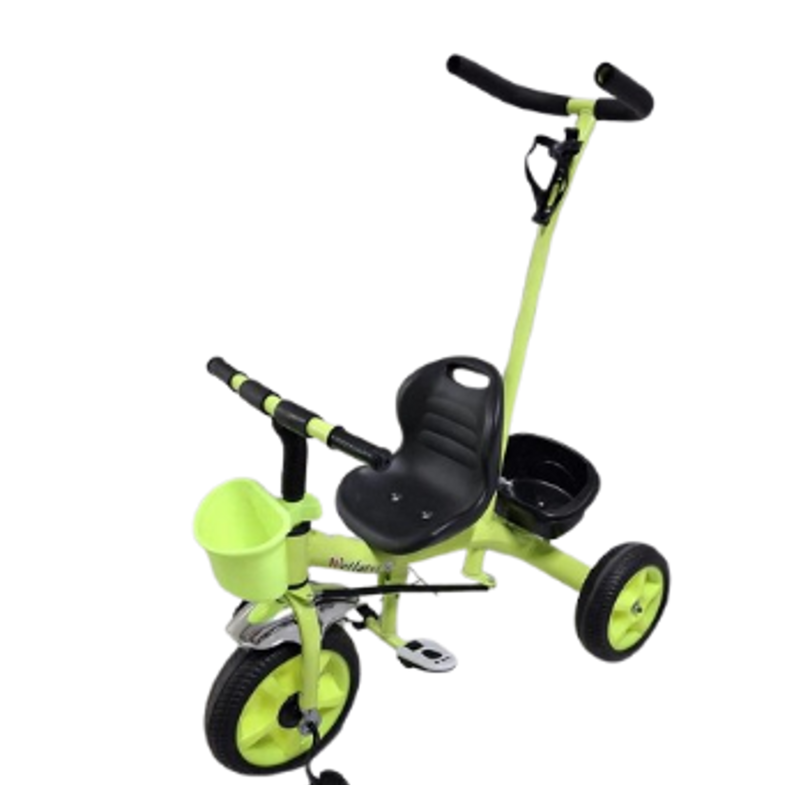 This tricycle is engineered for toddlers and young children, focusing on stability and ease of use. It features a sturdy 3-wheel design that prevents tipping, making it ideal for beginner riders. For parents, it includes a tall, detachable push handle that allows for easy steering and speed control during walks. The bike is equipped with dual storage—a small front basket for quick-access items and a larger rear basket for toys or snacks. The seat is ergonomically shaped with a supportive backrest to ensure the child remains comfortable and secure while pedaling.