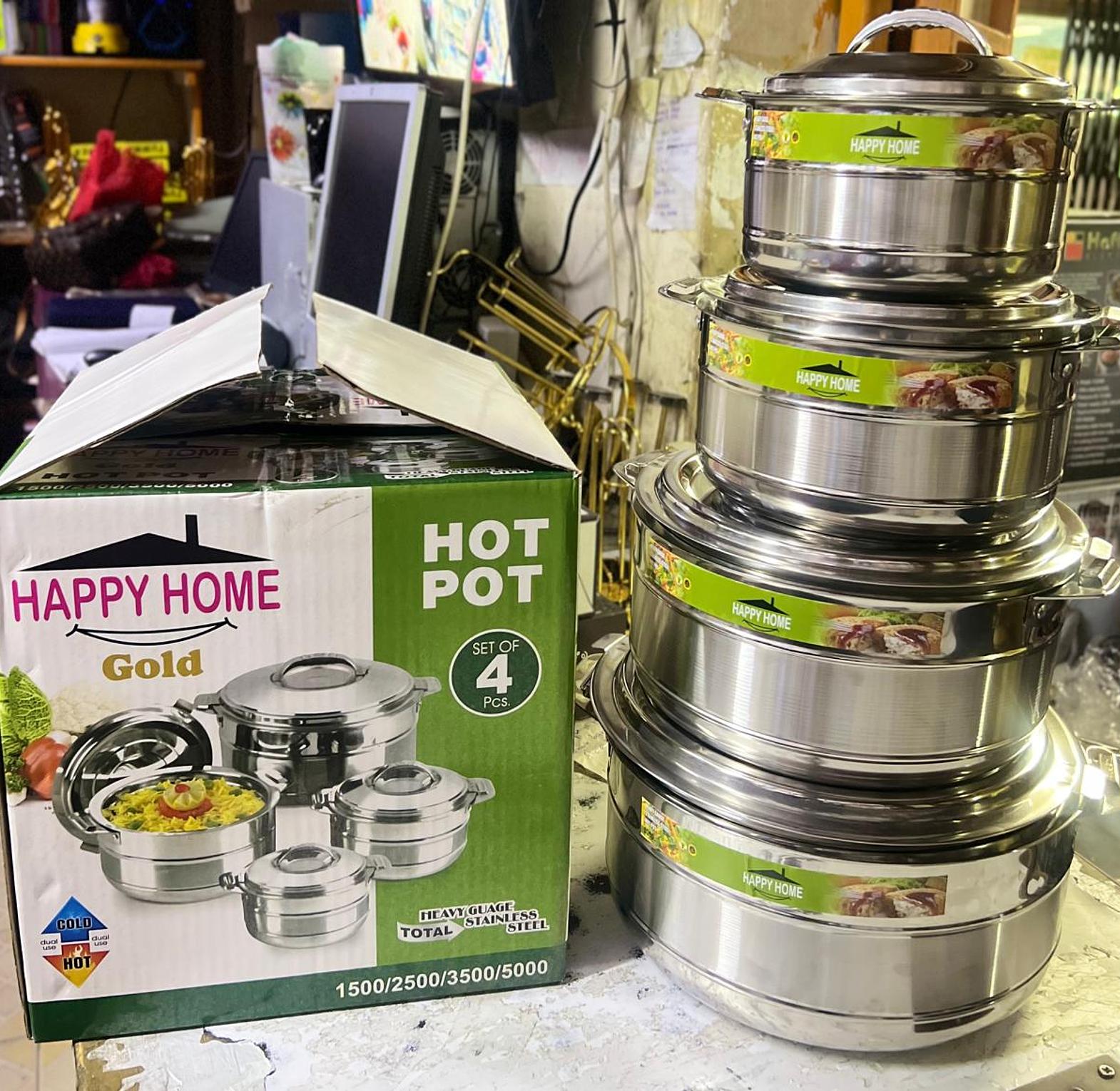 This set of four insulated casseroles is designed to keep food hot or cold for extended periods. Crafted from heavy-gauge stainless steel with a mirror finish, the hot pots feature a double-wall insulation system to lock in temperature and flavor. They are durable, easy to clean, and ideal for serving a variety of dishes at family gatherings, parties, or for everyday use.