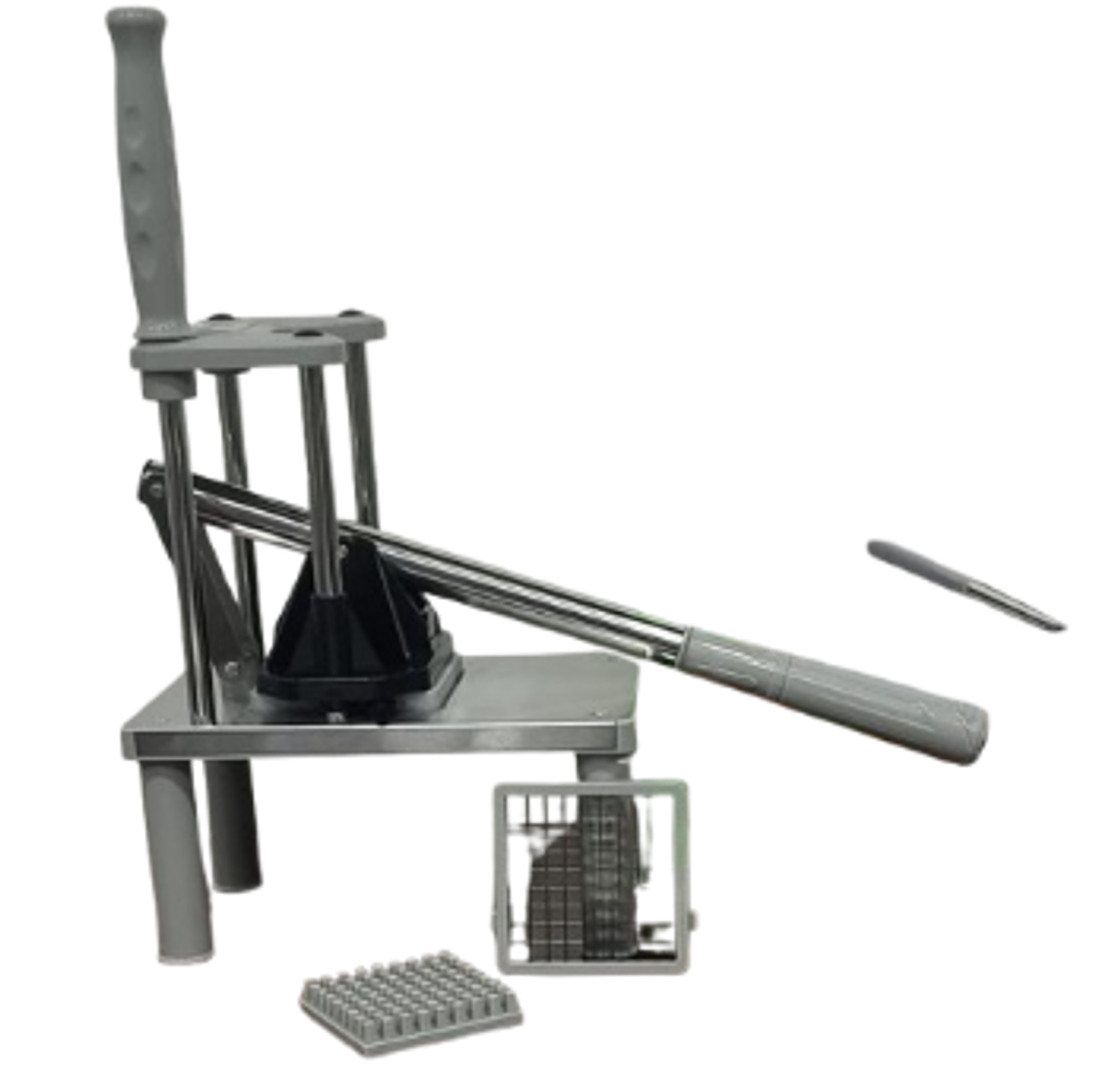 Brand Name: Huanpu (often marketed as "Good Helper"). Material: Built with a sturdy metal frame and precision stainless steel blades to ensure durability and rust resistance. Blade Options: Typically includes two interchangeable blades for variety: One blade for thin-cut fries. One blade for thick-cut or chunky chips. Base: Features a stable platform, often with non-slip rubberized feet to keep the unit steady during use
