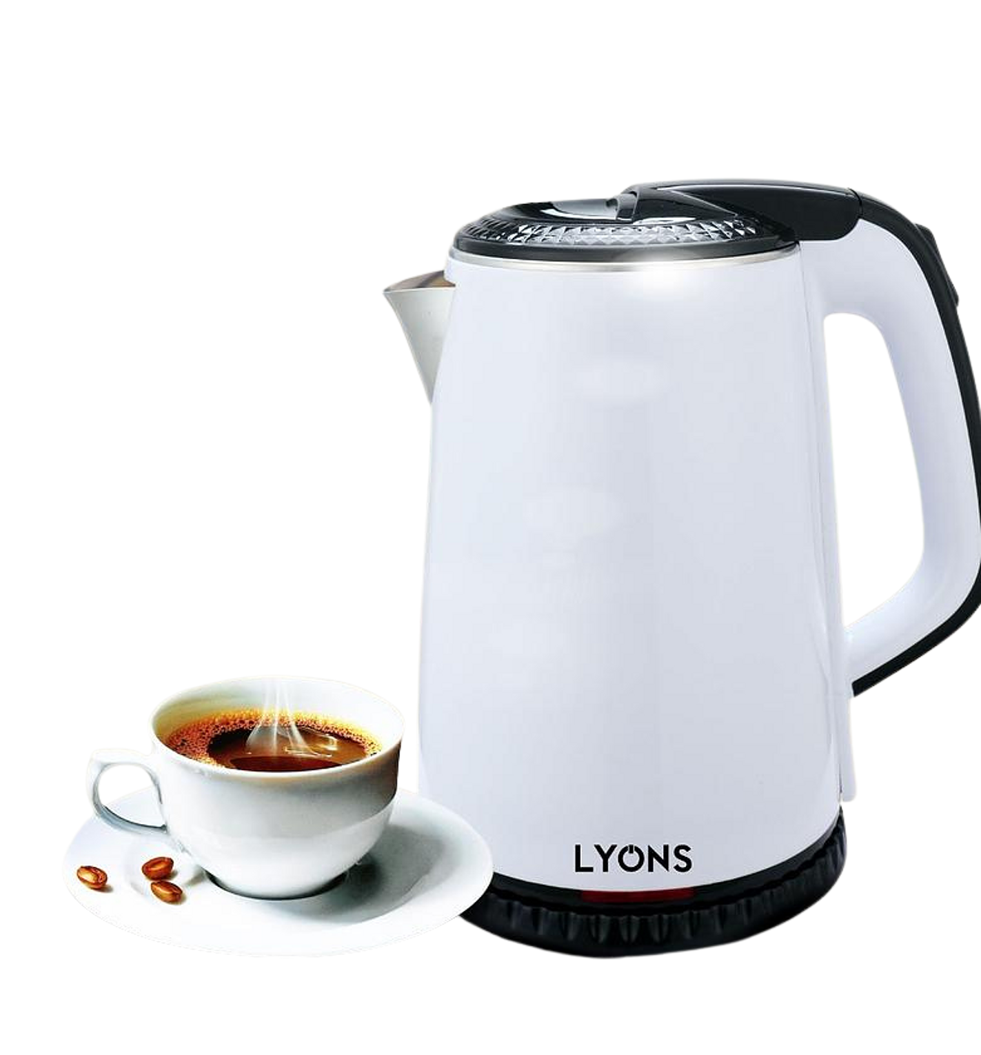 The Ailyons 2.2L FK-0306 Electric Kettle: efficient cordless kettle designed for quick and convenient boiling. It heats water 85% faster than a traditional stovetop kettle, making it a time-saving addition to any kitchen. Featuring a concealed stainless steel heating element, it ensures durability and even heat distribution. The automatic shut-off with boil-dry protection enhances safety, while the non-slip 360° rotary power base allows for effortless filling, pouring and serving. Its durable stainless steel body guarantees long-lasting performance, making it perfect for home or office use.