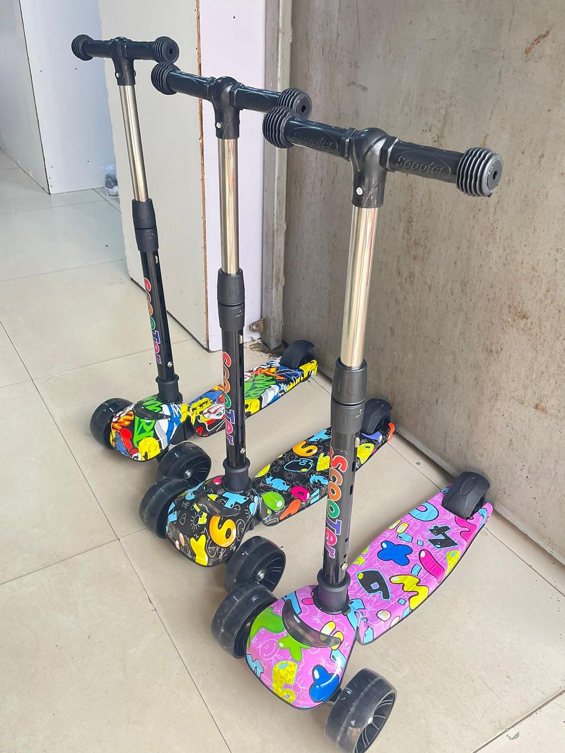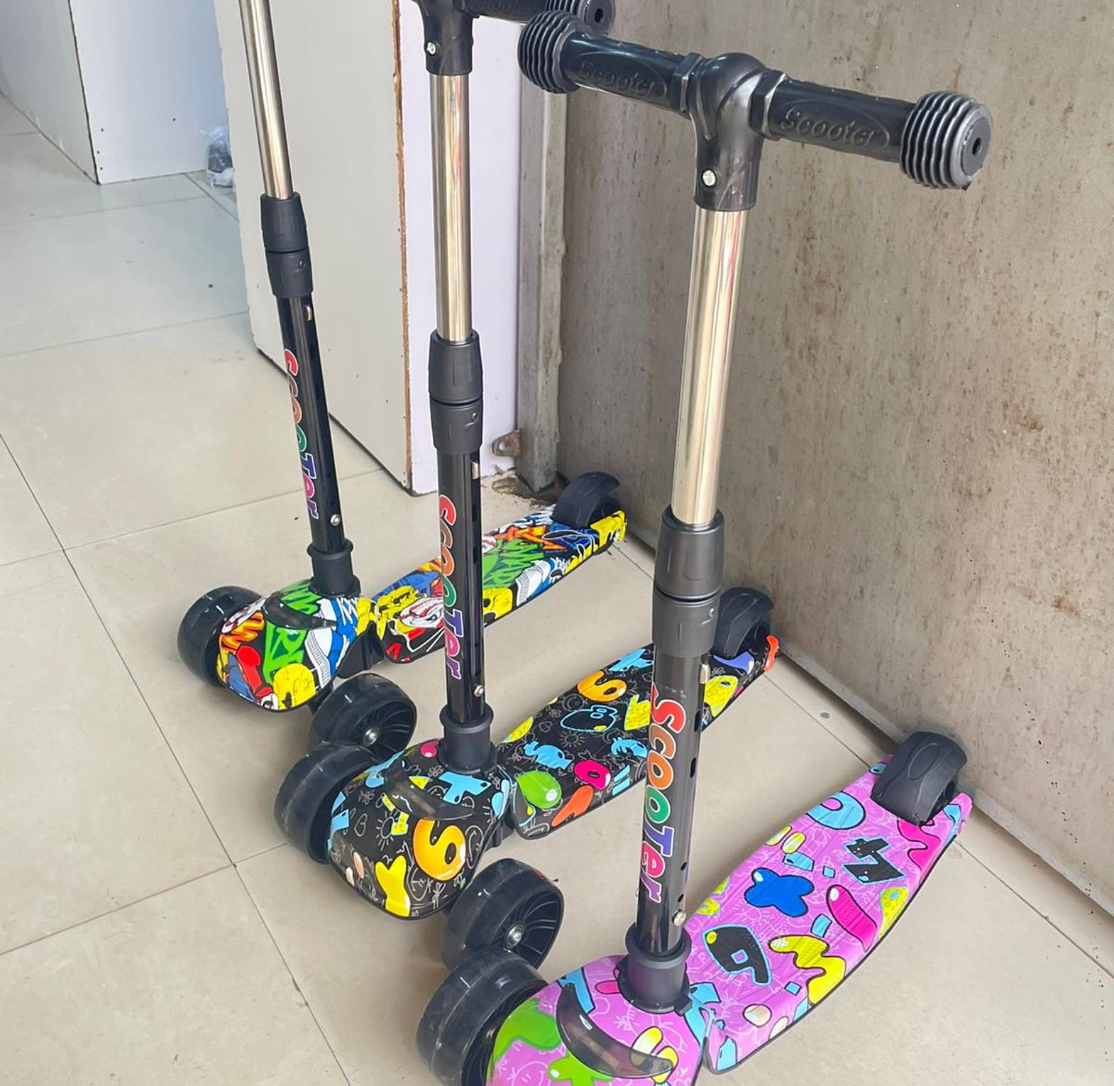 These are vibrant, eye-catching scooters designed for young riders, often featuring colorful, graffiti-inspired designs. They are built for durability and stability, making them suitable for beginners. A key feature is the "lean-to-steer" design, which encourages natural balance and coordination.