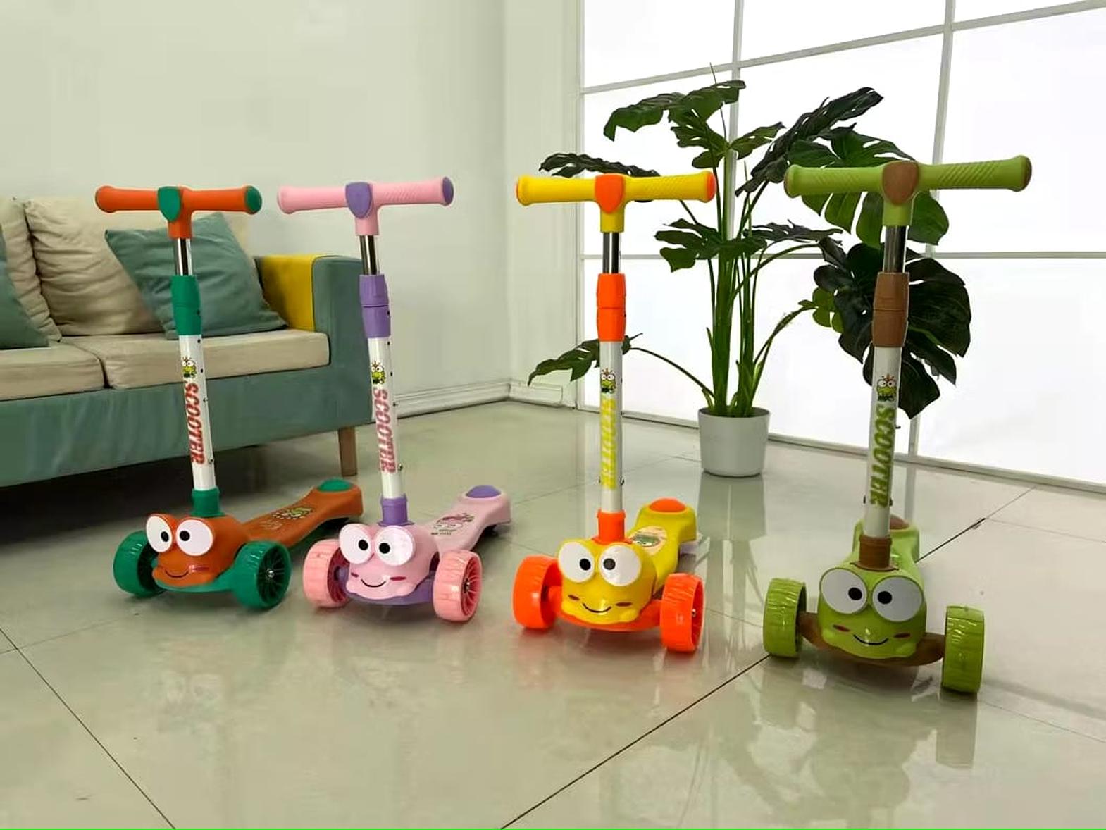 These are three-wheeled scooters designed for young children, featuring cute animal-themed designs and often incorporating elements like music and lights to enhance the play experience. They are built to help young riders easily build confidence and enjoy a fun outdoor activity.