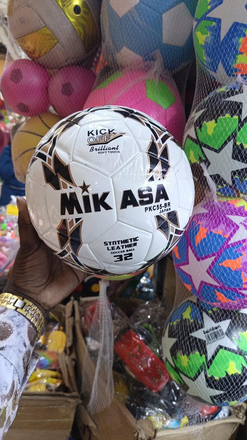 Name: Mikasa PKC55-BR Kick Off Brilliant Soccer Ball Material: Made of synthetic leather (TPU + EVA). It features a soft-touch design. Construction: Utilizes classic 32-panel sewing technology, ensuring good flexibility and durability. It is hand-stitched for consistent performance. Size: Official size 5.