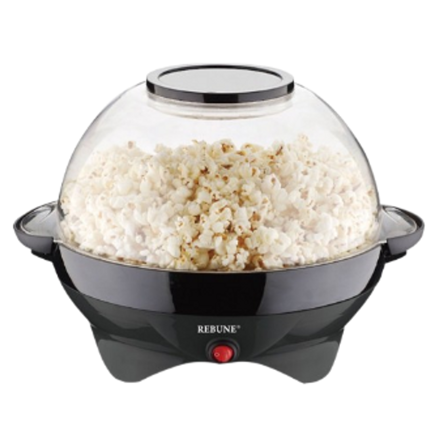This electric popcorn maker offers a healthier way to prepare popcorn by using hot air circulation instead of oil. It features an innovative lid that can double as a serving bowl, and it is designed for ease of use and cleaning.