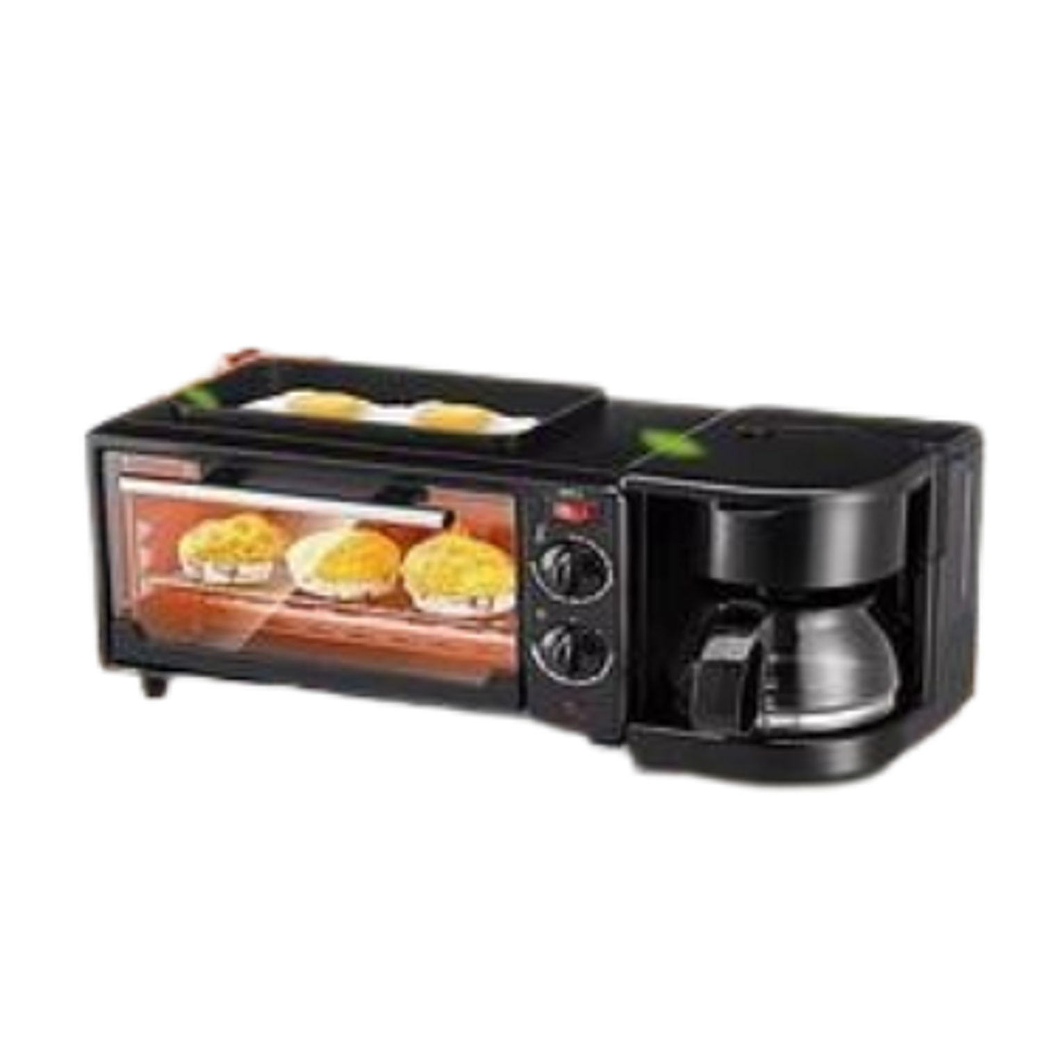 This versatile machine allows you to prepare a complete breakfast—coffee, toast, and eggs—simultaneously. It typically features a toaster oven for baking and toasting, a non-stick griddle on top for frying meats and eggs, and a built-in drip coffee maker. Its compact design makes it ideal for small kitchens, dorm rooms, apartments, and RVs.