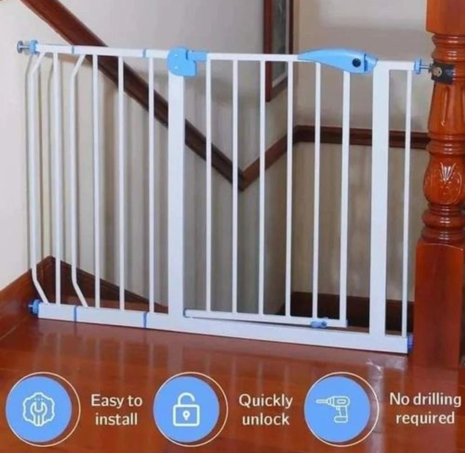 The pressure mounted gate requires no hardware or tools to install and sets up easily in door ways, stairs, halls and other pass through areas The magnetic Latch ensures the door swings closed and locks automatically. Parents can easily open using one hand, while the two-action handle remains tough for little fingers to release and open Main gate dimensions - 72cm Possibility of extending the gate (extension not included in the delivery sold separately) Strong durable metal Multifunctional