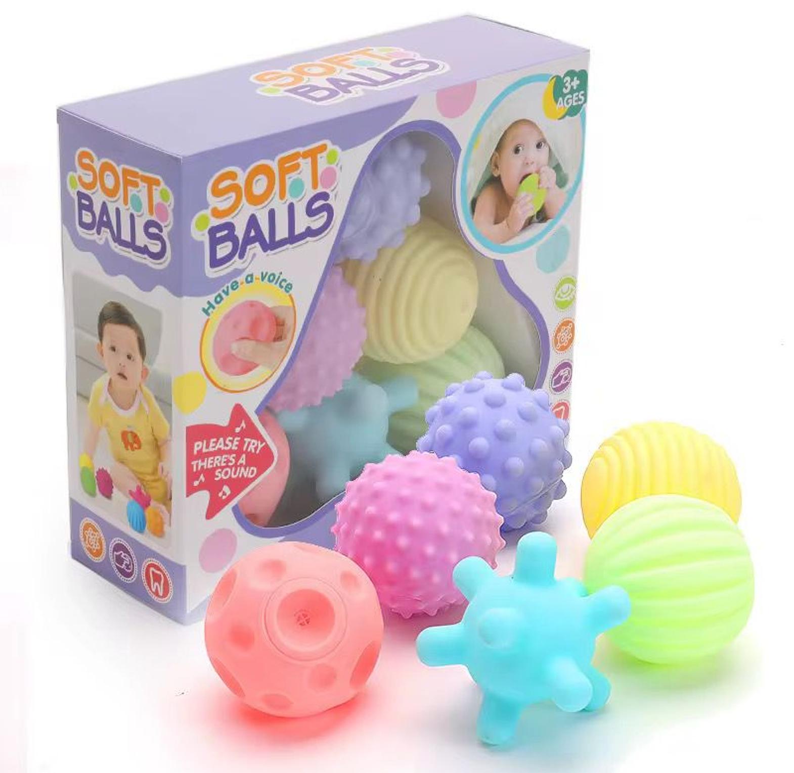 These multi-textured, vibrant balls are designed for early learning and play, stimulating visual and tactile senses in babies and toddlers. They are safe for little hands to grasp and explore, aiding in the development of fine motor skills and hand-eye coordination. They can be used during tummy time, as bath toys, or for general sensory exploration.