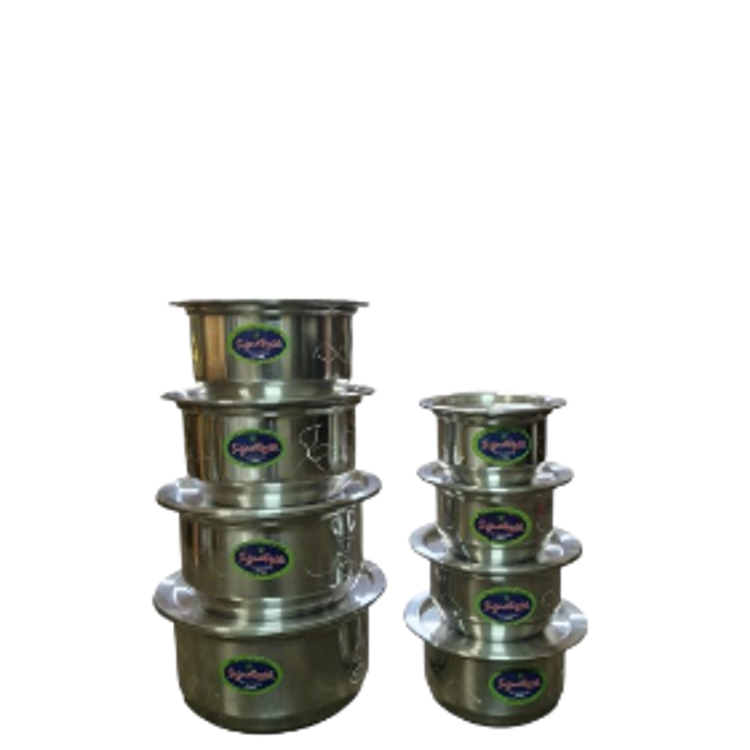 This set of cooking pots is made from high-quality aluminum, known for its excellent heat conductivity and durability for everyday kitchen use. [1.1]