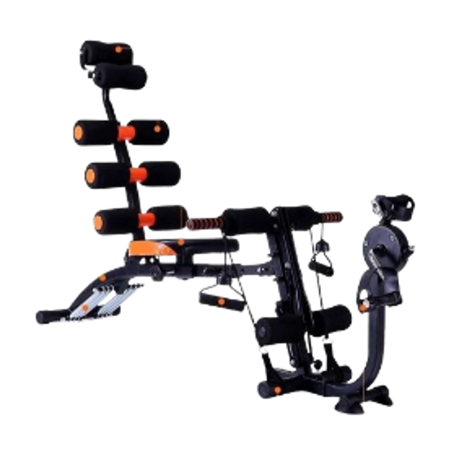 Multi-functional: Offers six or more exercises in one machine, including abdominal crunches, sit-ups, push-ups, triceps and bicep workouts, leg raises, and cycling (on some models). Targets multiple areas: Designed to target the entire abdomen, back, shoulders, and legs, helping to strengthen the core and improve overall fitness. Adjustable: Features adjustable resistance levels and can be positioned as an upright bench for various workouts. Convenient: Compact, lightweight, and easy to store, making it suitable for home use, apartments, or small offices.