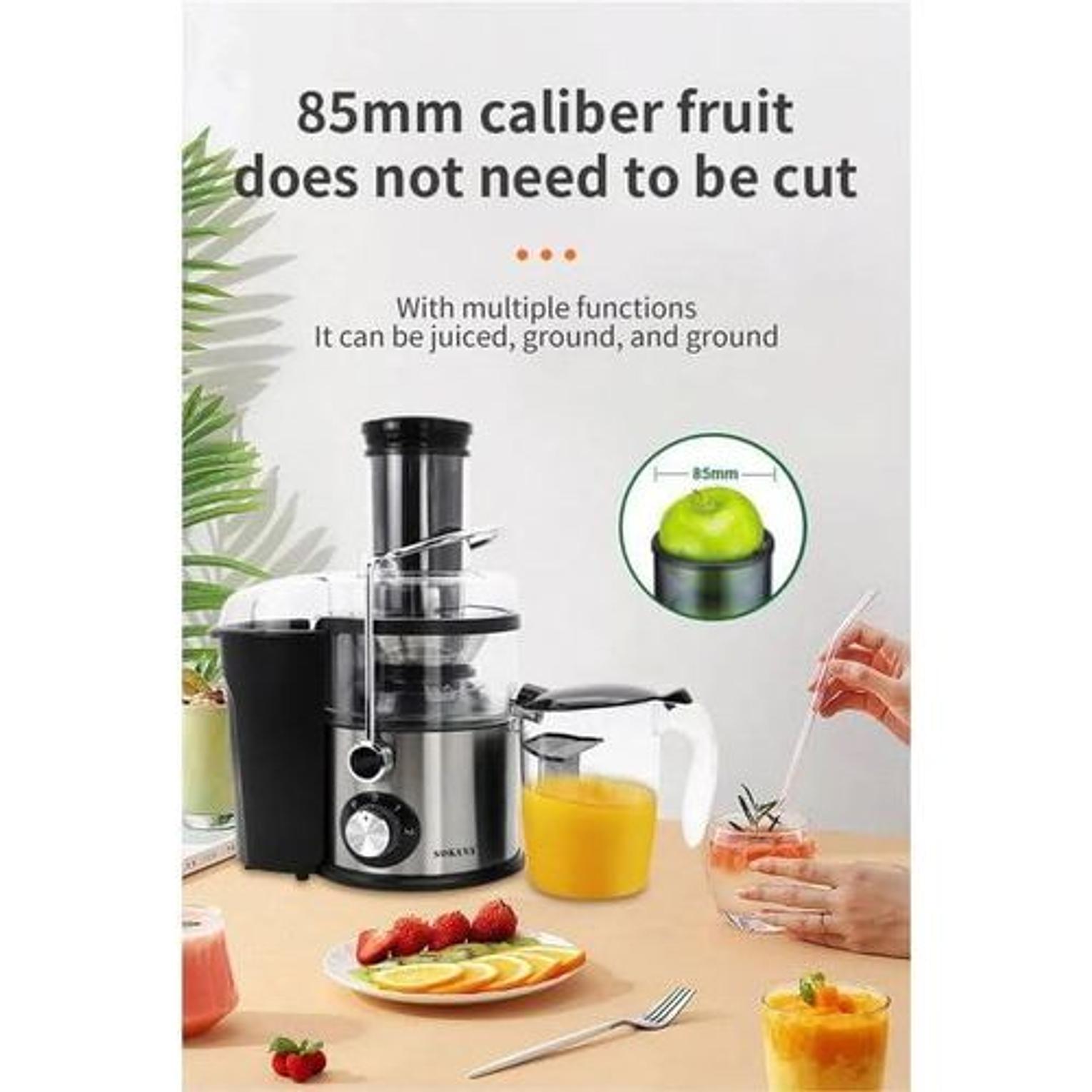 Upgraded 1200W Motor Centrifugal juicer machine with upgraded 1200W high speed motor, more efficient and powerful, last much longer than others. Dual Speed Juicer Machine - Juicer Machine with 2 speed control, "1" low speed for soft fruits and veg, such as watermelon, orange, strawberry etc. “2” high speed for some hard fruits and veg, such as carrot, apple, pear etc. Centrifugal Juicer with Wide Mouth - Centrifugal juicers have a wide mouth to feed your fruits and veggies into, Save your time on chopping and cutting the fruits and vegetables before juicing. Safety Design and Easy to Clean - Juicer Extractor with locking system arm, it will not work without cover locked into place. Overload protection system will switch off machine once overheating occurs. Detachable parts makes it easy to clean! Notice: Avoid trying to juice things with a low water content.