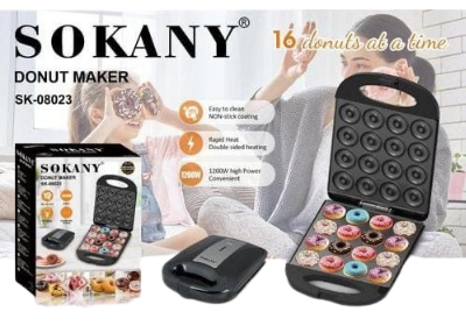 Non-stick coated heating surface Wind-up power cord Thermostatically controlled Heating element 220-240V ergonomically designed 7 mouth watering donuts in minutes FAST: Ultra-fast heat up. Get cooking rather than waiting around the kitchen! POWERFUL: Power and ready light indicators so you know when it's time to get baking. TEMPERATURE CONTROL: Automatic temperature control to ensure perfect donuts every time! SAFE: Cool touch handle. Enjoy making healthy fat free doughnuts without a hustle! Donut MachineNon-stick coated plateHeat insulated handle2 control lights for power and HeatingHigh stability through rubbrized feetOverheating protection This new Doughnut Maker (12 Pieces) comes equipped with the right tools of temperature regulation to ensure a good and easy time in the kitchen. This new design promotes a sense of style and elegance in the kitchen while does the job fast. it is coated with a non-stick ceramic coating that ensures round and smooth textured doughnuts and prevent overheating leading to a properly cooked delicacy. Order for this item online and have it delivered to you right to your doorstep
