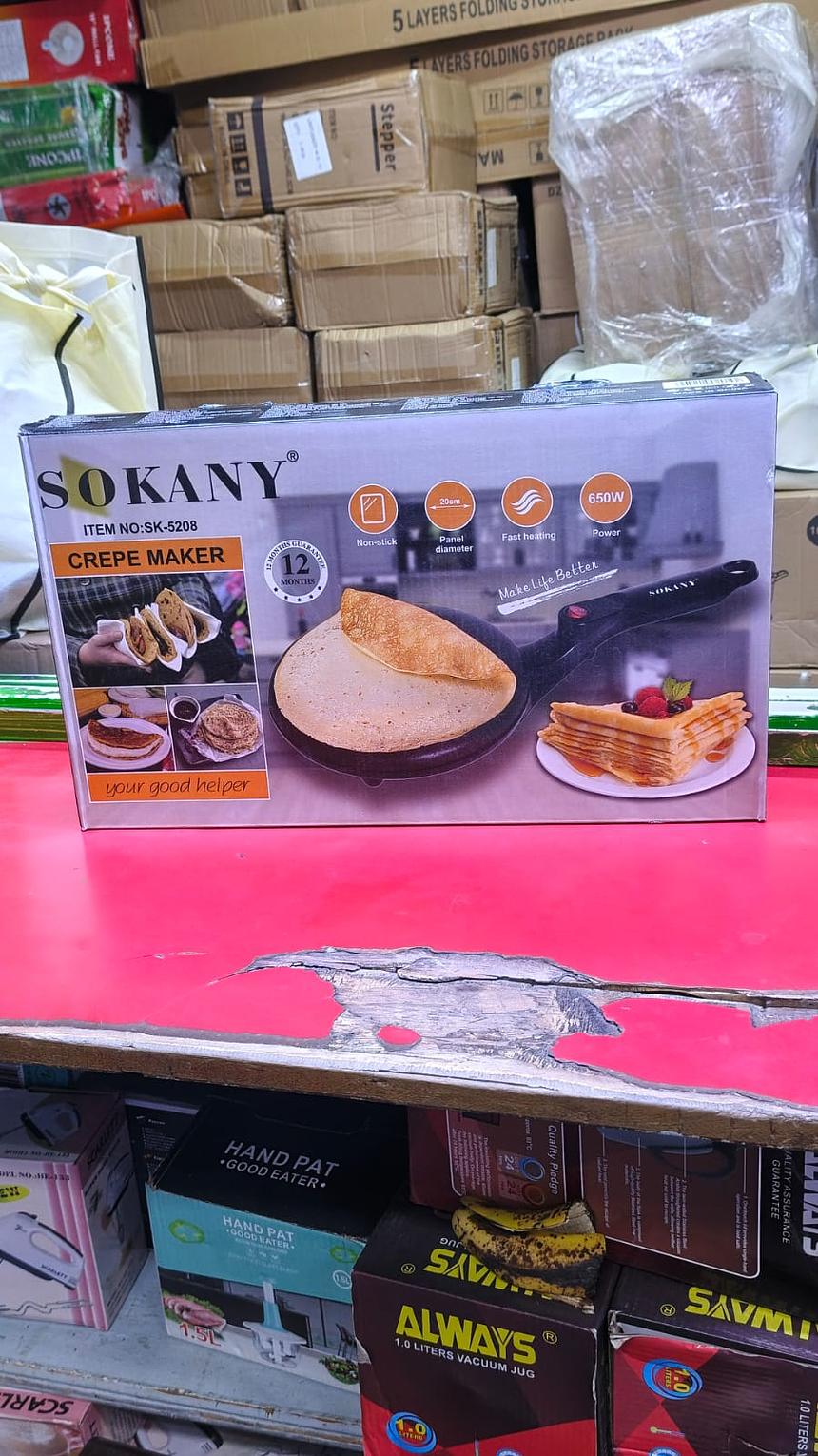 This electric crepe maker is designed to make cooking crepes, pancakes, chapatis, tortillas, and other flatbreads quick and easy at home. Key features include: Non-Stick Surface: The cooking plate has a non-stick coating, ensuring easy food release and simple cleaning. Even and Fast Heating: The appliance provides even heat distribution and heats up quickly, allowing for consistent cooking results in minutes. User-Friendly Design: It is compact, lightweight, and features a cool-touch handle for safe operation and easy storage. Indicator lights show when the surface is ready to use.