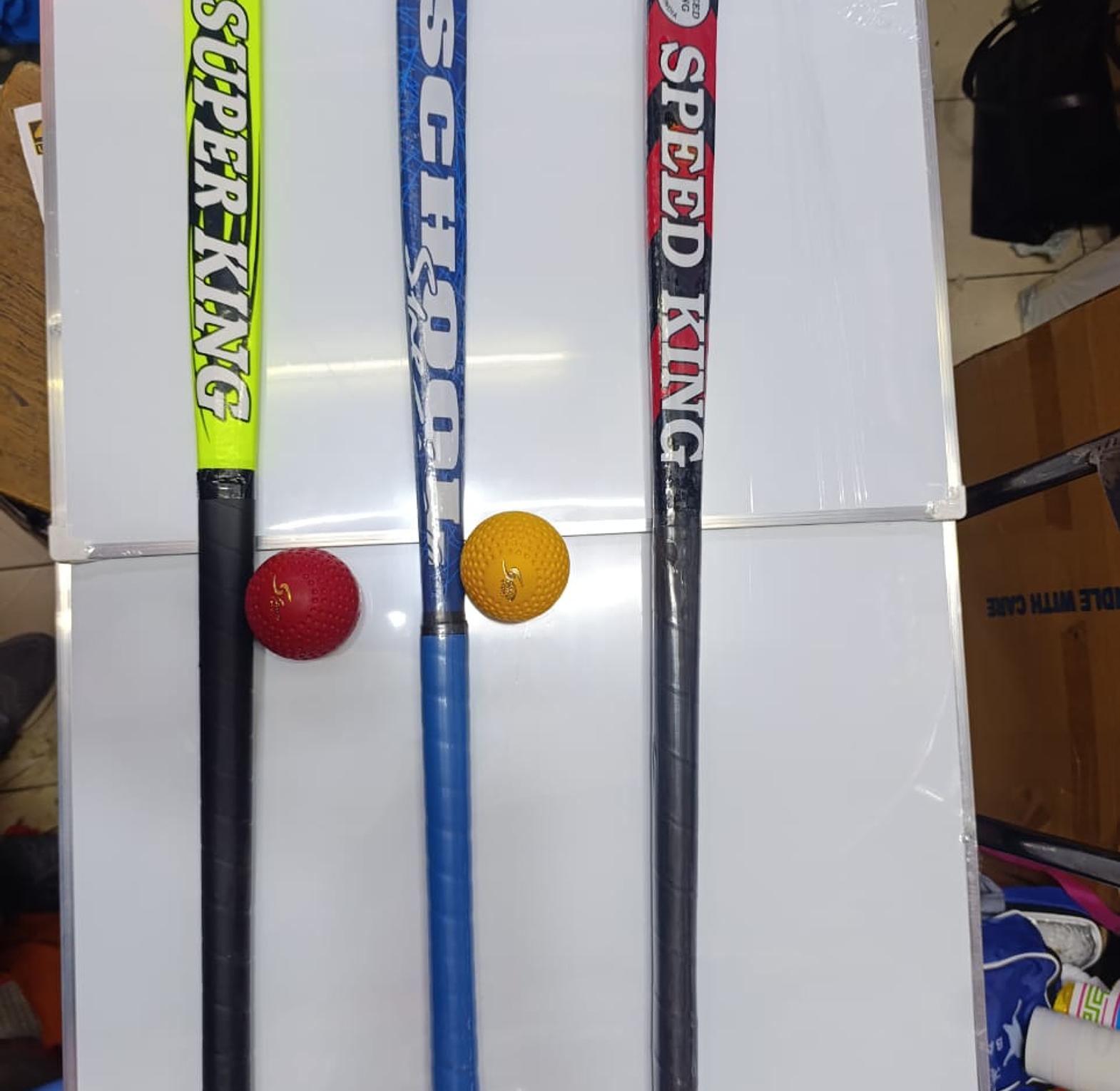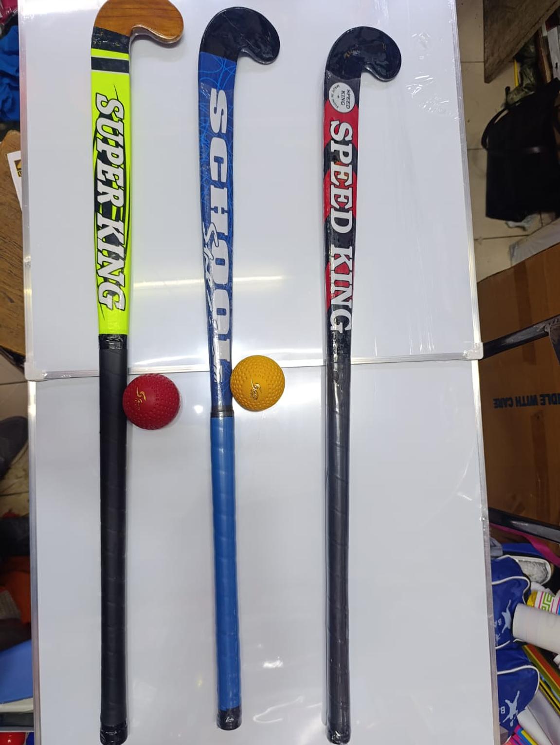 These are standard field hockey sticks used for playing the sport of field hockey. They feature a curved end (head) to hit the ball and a straight handle for grip.