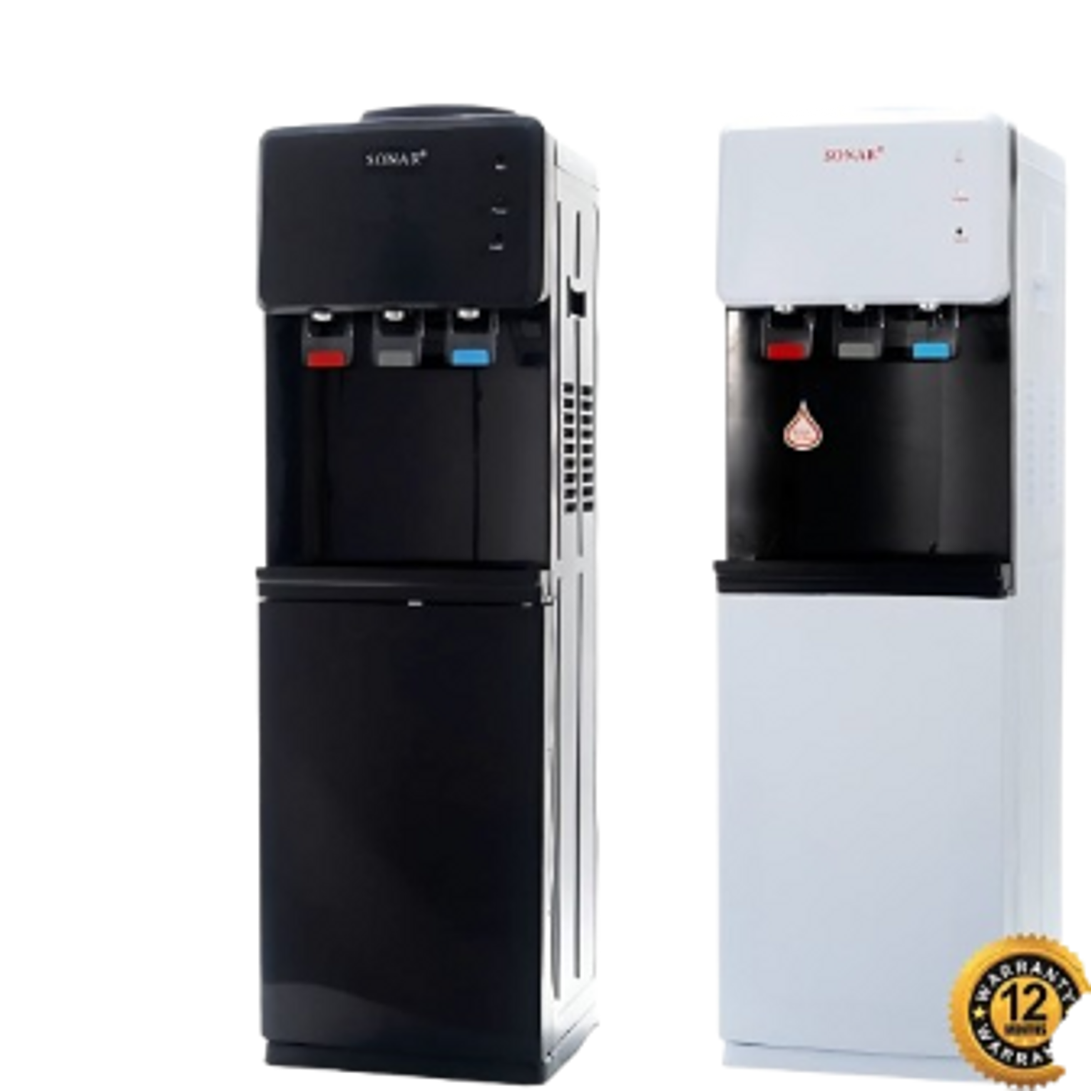 The Sonar L9C Hot, Normal, and Cold Standing Dispenser is available in both white and black colors. It offers three temperature options: hot, normal, and cold water dispensing. The hot tap includes a child safety lock for safety.