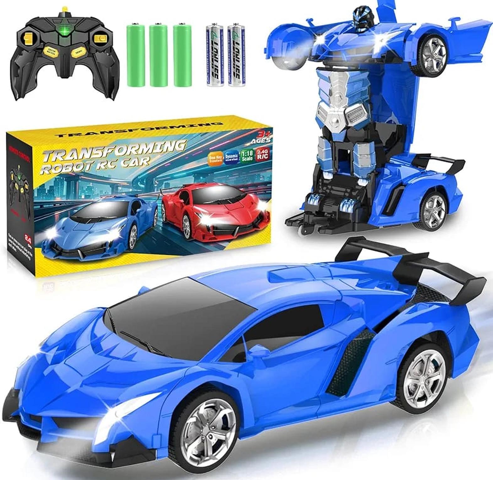 2-in-1 Model: The toy can transform automatically from a sports car into a robot and back again with a single button press on the remote control. Dynamic Features: It typically includes realistic engine sounds, cool LED lights, and the ability to perform 360-degree spins and drifts in both car and robot modes. Durable Construction: The car is often crafted from durable ABS plastic with anti-fall construction designed to withstand typical play.