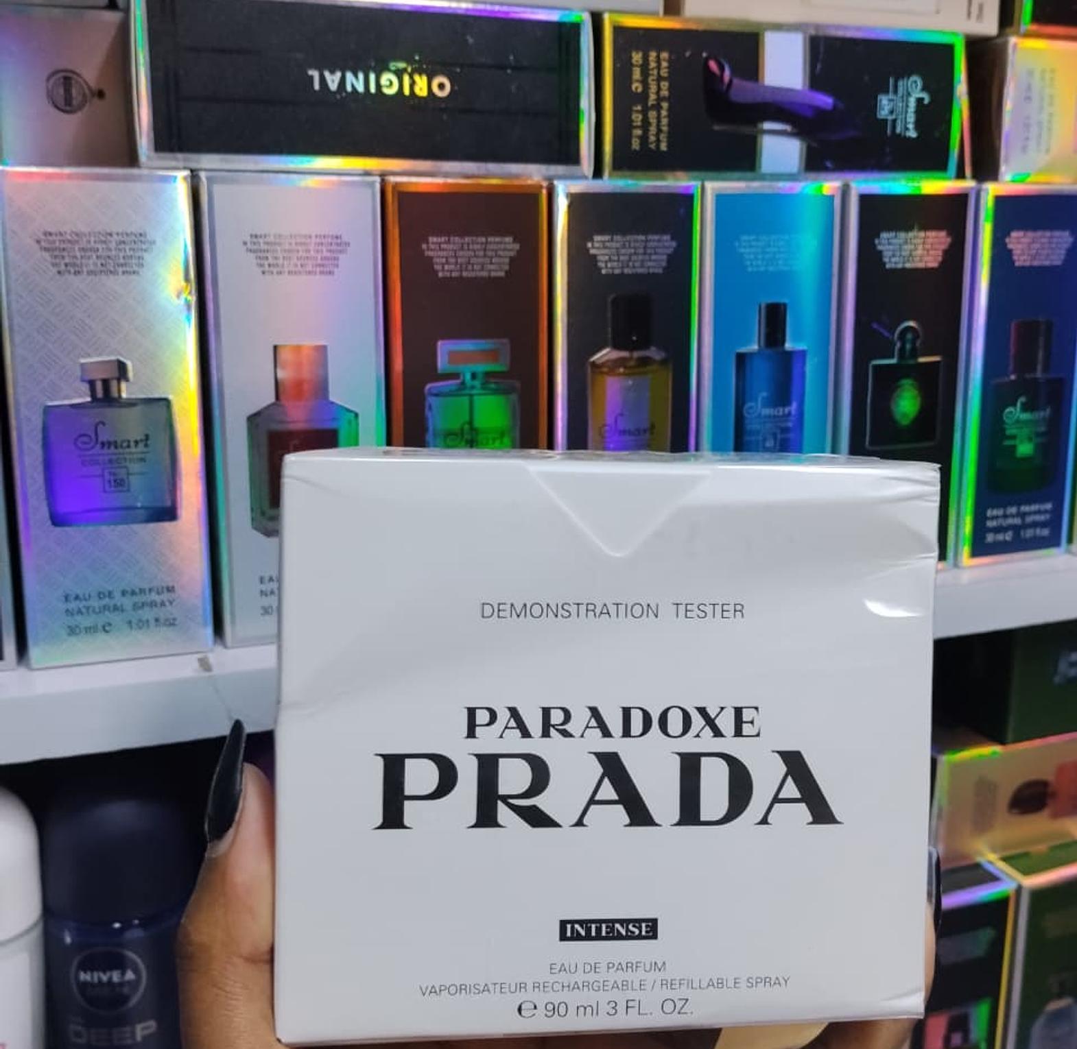 Prada Paradoxe Intense Eau de Parfum is a luxurious and sophisticated fragrance that embodies bold femininity and elegance. This scent is an intensified version of the original Prada Paradoxe, offering a deeper, richer olfactory experience. Fragrance Notes: Top Notes: Bergamot, Pear, Neroli Heart Notes: Jasmine, Orange Blossom, Moss Base Notes: Amber, Vanilla, White Musk This perfume is designed for individuals who appreciate bold yet elegant fragrances with a mix of floral, warm, and musky notes.
