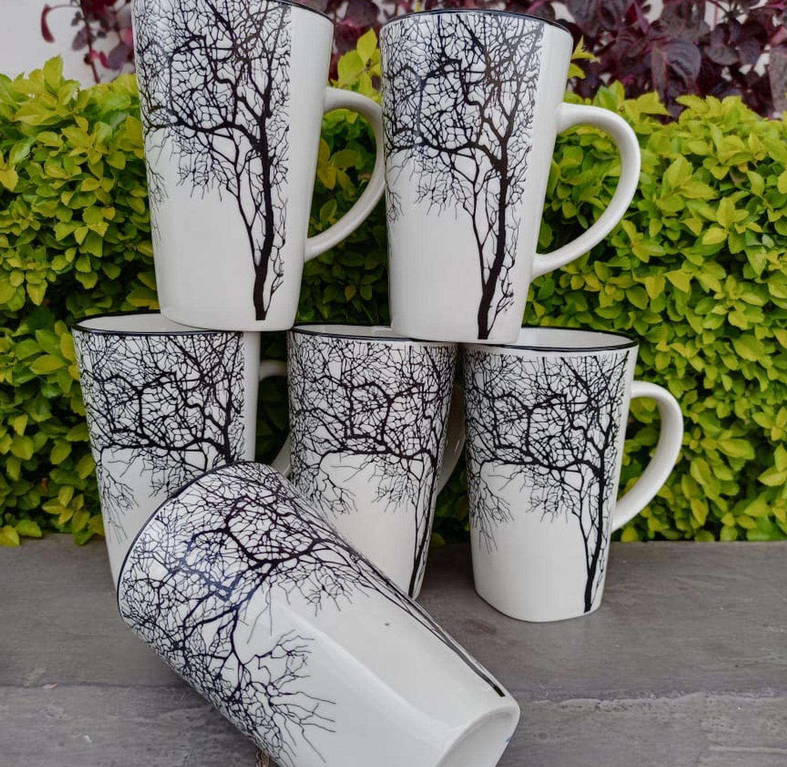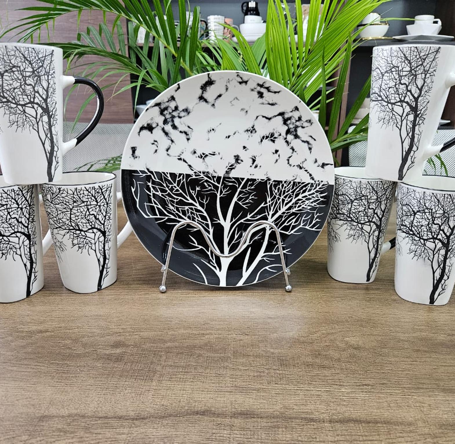 12 pc Ceramic Plate And Mug Set Tree Mugs 6pcs Plates 6pcs