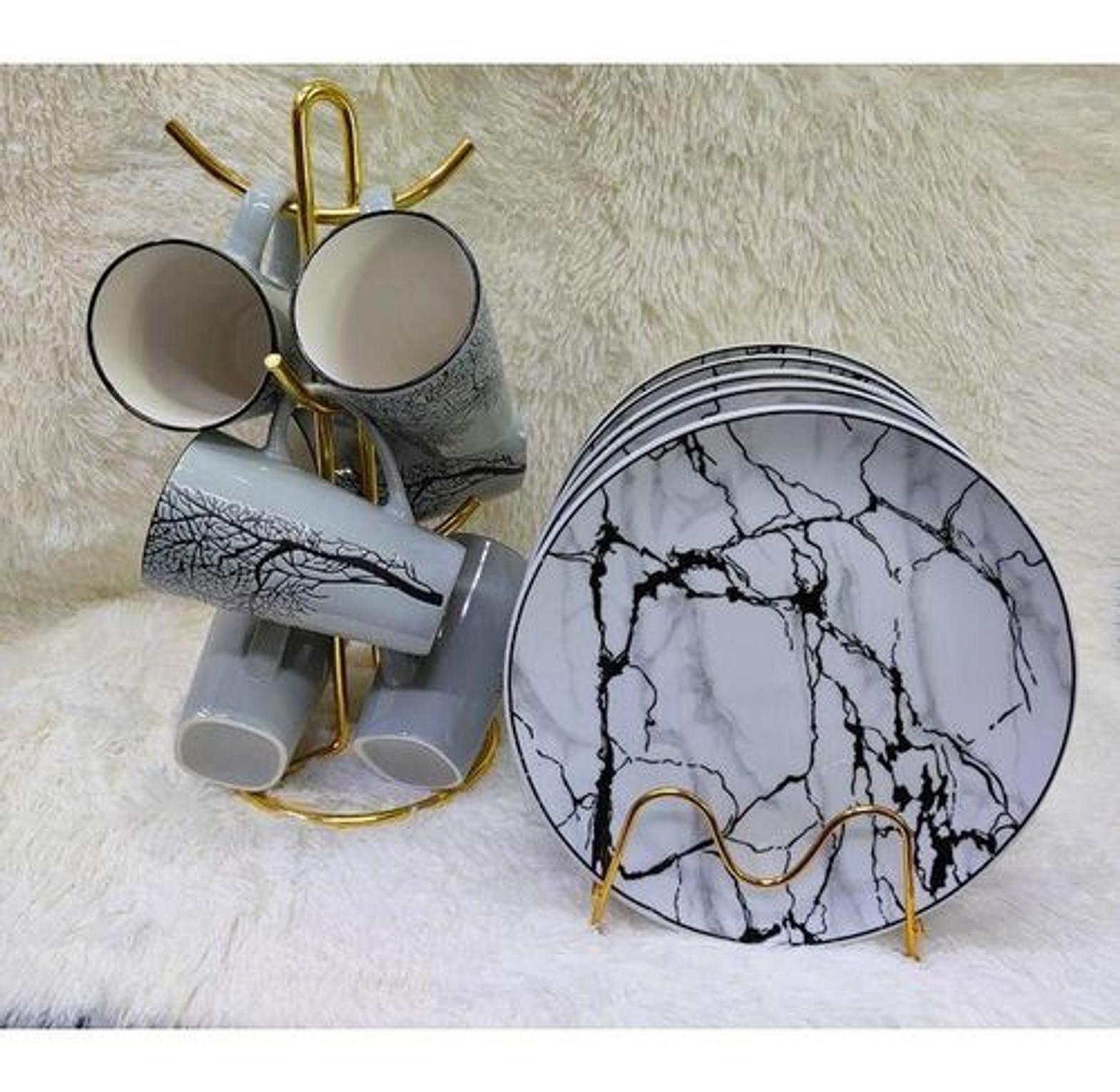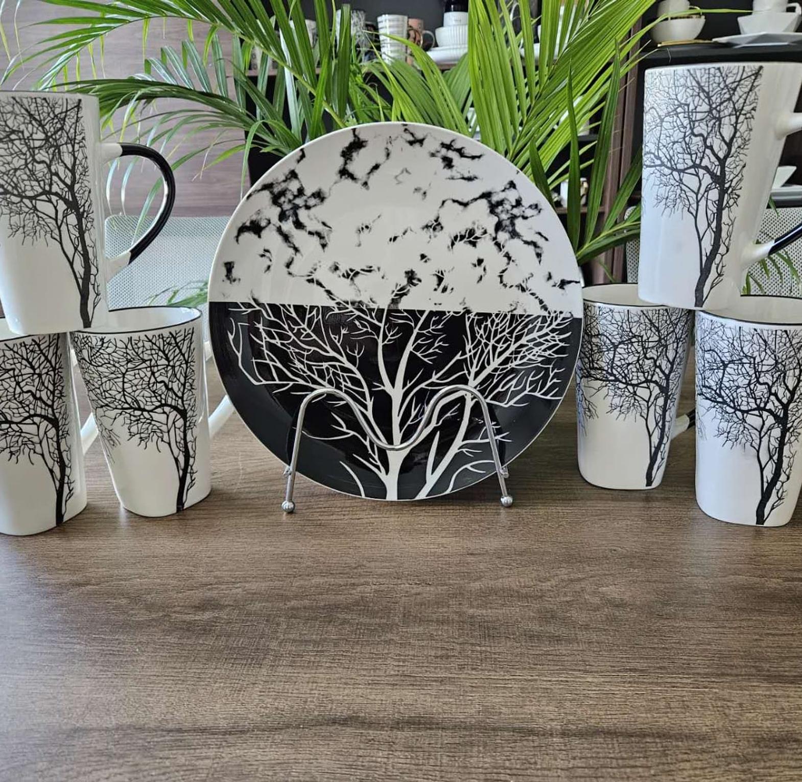 The modern kitchen needs the right kitchen utensils and appliances to create an inviting atmosphere. We brings you this perfect dinner plate with a premium quality for your daily kitchen needs that will help you serve the perfect meal. Pack of 6 dinner set plates and mugs, made from durable ceramic material Color: white with nice red prints, custom design. Colorful stylish looking with beautiful decoration Ceramic. Microwave & dishwasher safe. Good product quality and whiteness.