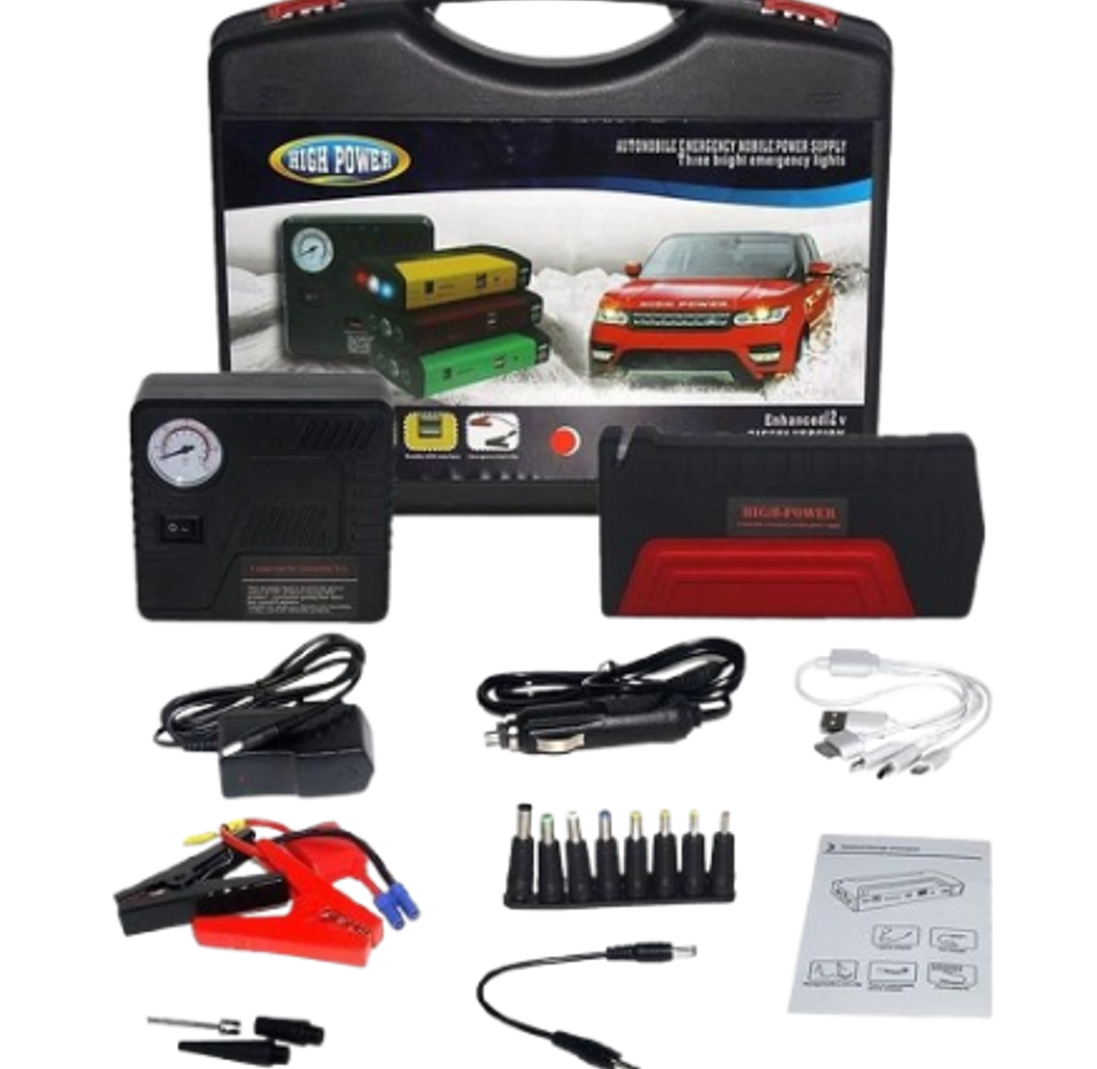 12V Portable Multi-Function 50800 Milliamp Hours Jump Starter Car Jumper Starter, Mobile Phone Charger with 2 Ports, Torch and SOS Light for All Cars Start Dead Batteries - Safely jump start a dead battery in seconds with this compact, yet powerful, 1000-amp portable lithium jump starter - up to 20 jump starts on a single charge - and rated for petrol engines up to 6-liters and diesel engines up to 3-liters. image Ultra Safe and easy to use without the worry of incorrect connections or sparks. Safely connect to any 12-volt battery with our mistake-proof design featuring spark-proof technology and reverse polarity protection. Multi-Function - It's a jump starter, power bank, and LED flashlight. Recharge smartphones, tablets, and more. Or quickly recharge from any USB port. Plus, an ultra-bright 100-lumen LED flashlight with multiple settings, including emergency strobe and SOS. Advanced Design - Our most advanced jump starter ever. Featuring high-discharge lithium technology for safe operation in any climate. A rugged and water-resistant enclosure rated at IP65. And an ultra-compact and lightweight design, weighing only 2.4-pounds.