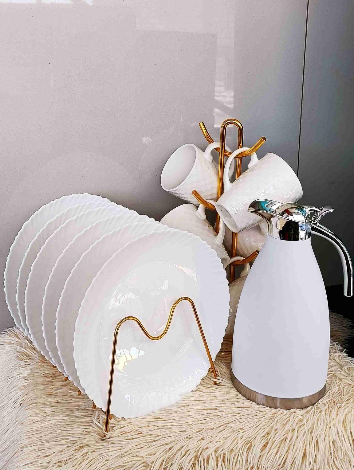 UNBREAKABLE 2L FLASK, 6 DINNER PLATES, 6 CUPS. Cups Ideal for enjoying tea, coffee ,decaf, espresso, lattes or hot dark chocolate and more. Strong mugs in big value pack provide insulation to keep drinks warmer for longer. Made with thick comfortable grip ergonomic handles. Quality Chip resistant material. Microwave safe for reheating any kids or adults beverage of choice. Classic design fit any kitchen style. Each mug in porcelain drinkware set is dishwasher safe for easy cleaning. Strong mugs Made with thick comfortable grip ergonomic handles Quality Chip resistant ceramic material Classic design fit any kitchen style. UNBREAKABLE FLASK, 6 DINNER PLATES, 6 CUPS Cups Ideal for enjoying tea, coffee ,decaf, espresso, lattes or hot dark chocolate and more. Strong mugs in big value pack provide insulation to keep drinks warmer for longer. Made with thick comfortable grip ergonomic handles. Quality Chip resistant material. Microwave safe for reheating any kids or adults beverage of choice. Classic design fit any kitchen style. Each mug in porcelain drinkware set is dishwasher safe for easy cleaning Perfect for Home or Restaurant use ,indoor or outdoor use.