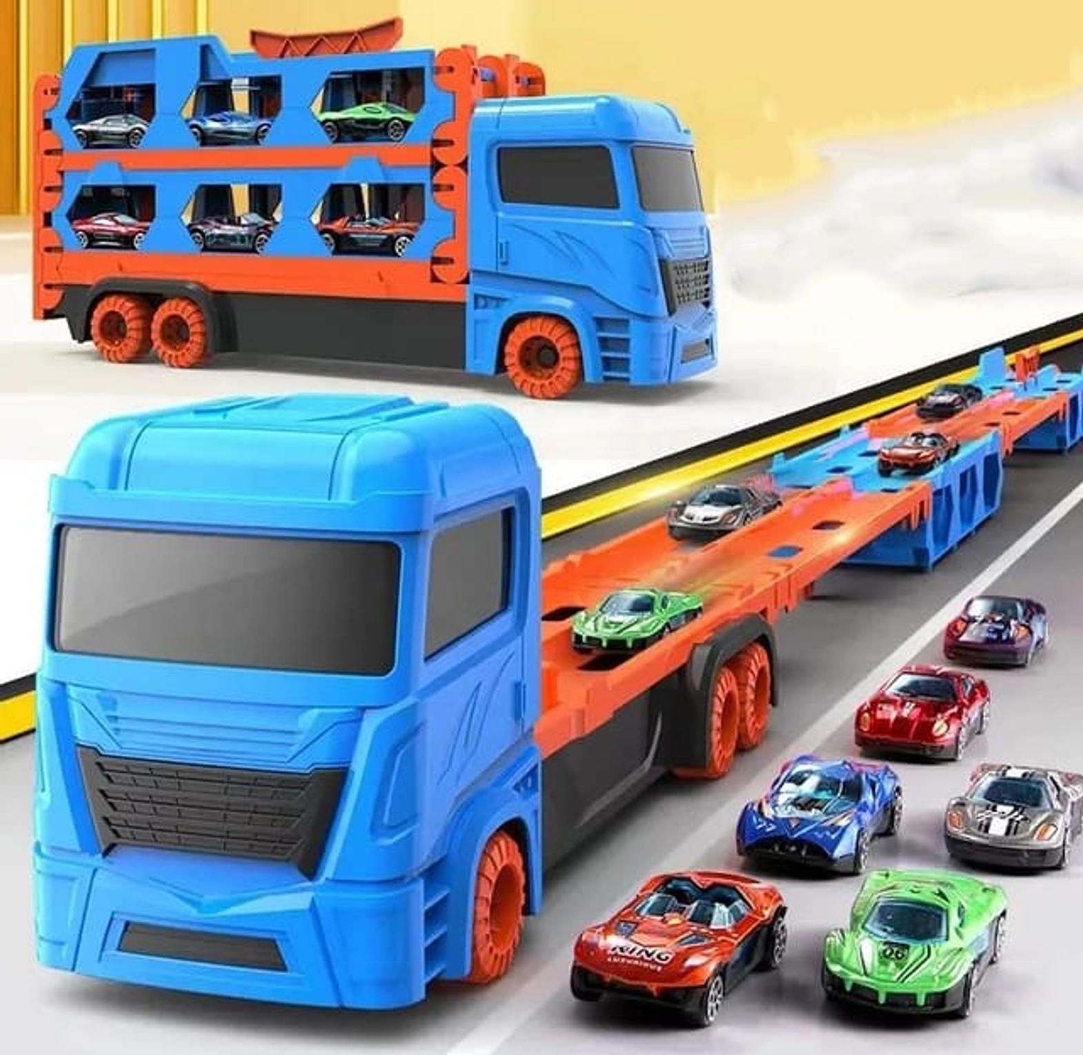 12 Race Cars【3-In-1 Transport Truck Toys】This trucks toys for 2 3 4 5 6 year old boys makes for great push-around play on its own, while also serving as storage space for small cars. And the 3-in-1 truck toy for boys also transforms into a 61-inch race track with a dual launcher for competitive racing.