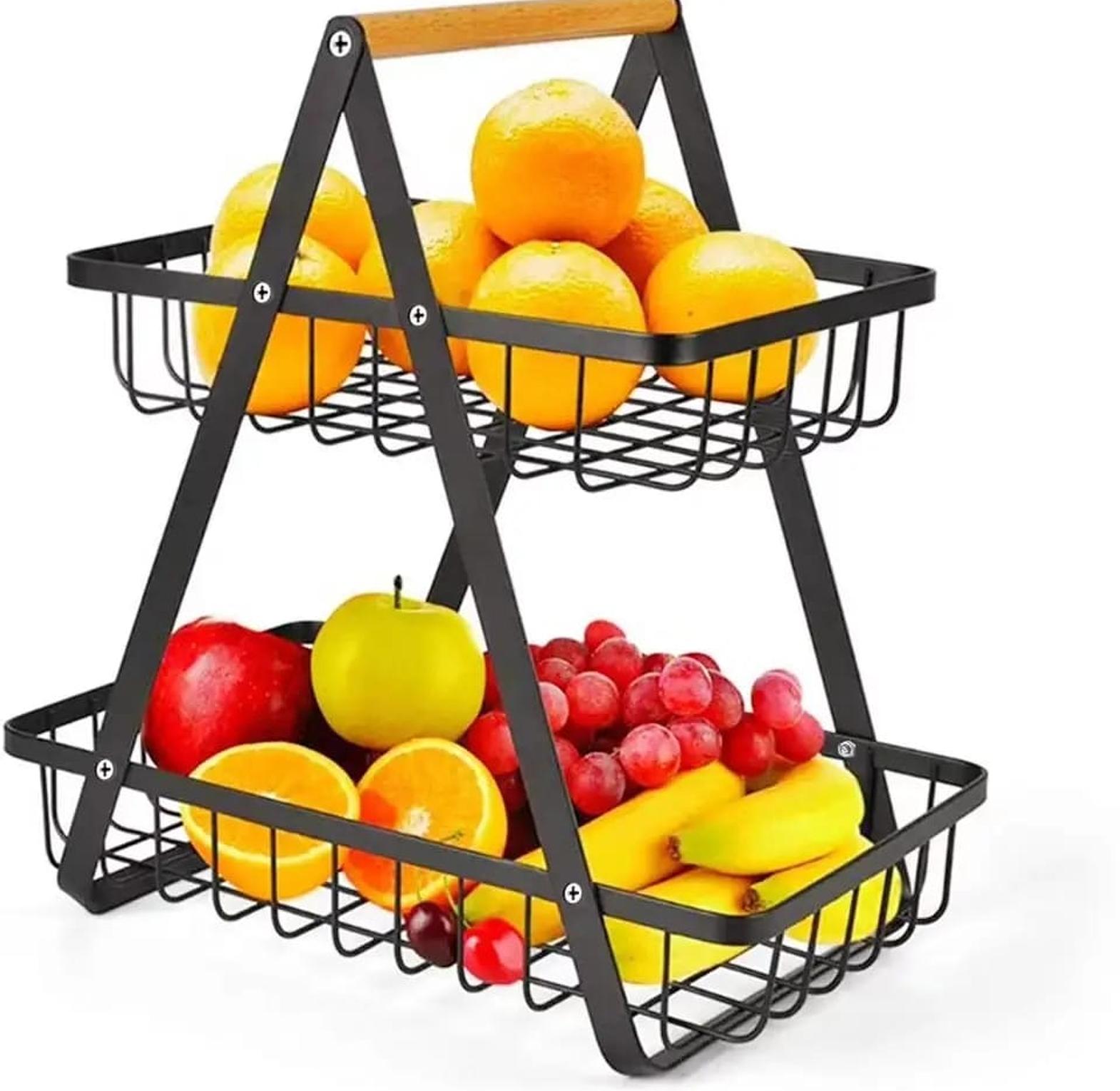 Introducing the 2 Layer Metallic Fruit Rack, a versatile and stylish solution for your kitchen storage needs. This rustproof and washable fruit basket is designed to save space on your table or kitchen countertop while providing ample storage for vegetables, fruits, snacks, K-Cup coffee, bread, toys, and more. The rack stands at a height of 11.4 inches with the top basket measuring 8.3 inches in length by 6.7 inches in width and the bottom basket measuring 10.6 inches in length by 6.7 inches in width. Crafted with a stylish layered design, this metal rack is both sturdy and easy to assemble, making it a beautiful addition to your kitchen. It fits perfectly under kitchen cabinets and provides generous storage space with its double baskets, allowing you to store a variety of items and easily access what you need thanks to its wire design. The handmade wrought iron construction ensures durability, maintaining its aesthetic appeal even with regular use. Its solid metal structure offers excellent load-bearing capacity and superior resistance to rust compared to general metal wire baskets. This 2-layer fruit stand is highly functional and can be placed on a countertop or hung in a pantry. It’s not limited to storing fruits and vegetables; it can also organize tea and coffee supplies, making it a versatile addition to any area of your home. The rack’s design allows it to seamlessly integrate into various decor styles, including country, traditional, and modern. Order the 2 Layer Metallic Fruit Rack from Vicmer Store Kenya today and enjoy a stylish and efficient storage solution for your kitchen. With its combination of functionality and elegance, this double-layered produce basket will enhance the organization and aesthetics of your kitchen bench, countertop, breakfast table, or dining table.
