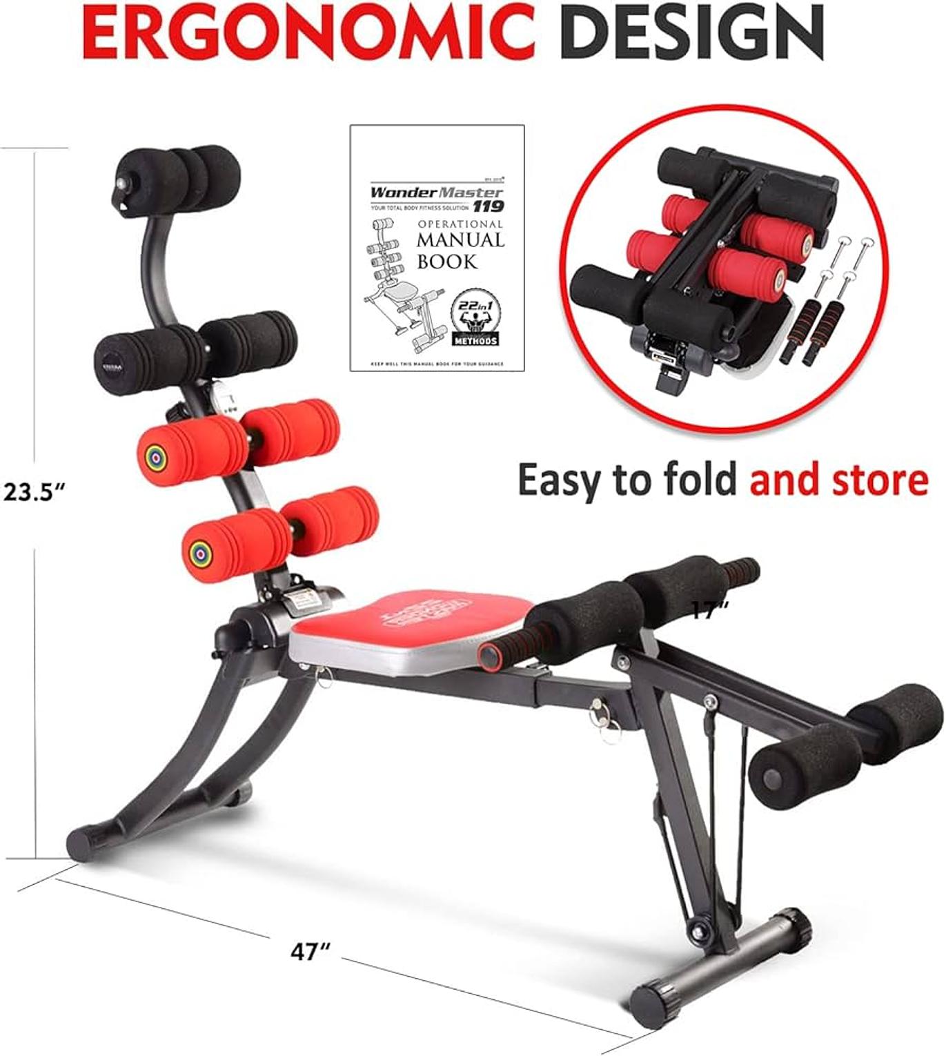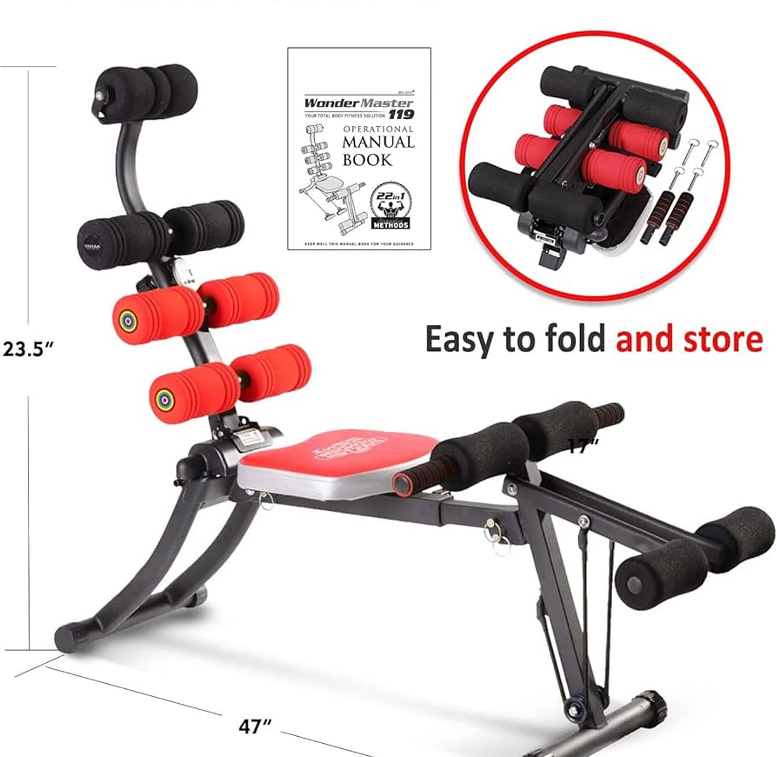 NO GYM,NO WORRIES..... This is all YOU need for your fitness The 22 in 1 WONDER MASTER trains your; ; Abs and back ; Curves and your legs ; Obliques and chest ; Shoulders and triceps ; Traps and glutes