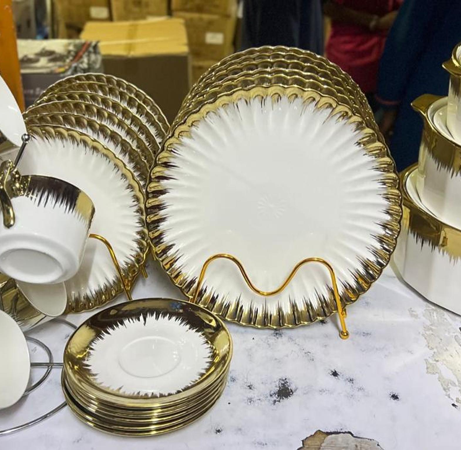 27 pcs Gold ring ceramic dinner set 6 pcs 8 inch dinner plates bowl 3L ,2L and 1.5 L 6 pcs mugs 240 ml and 6 pcs saucers