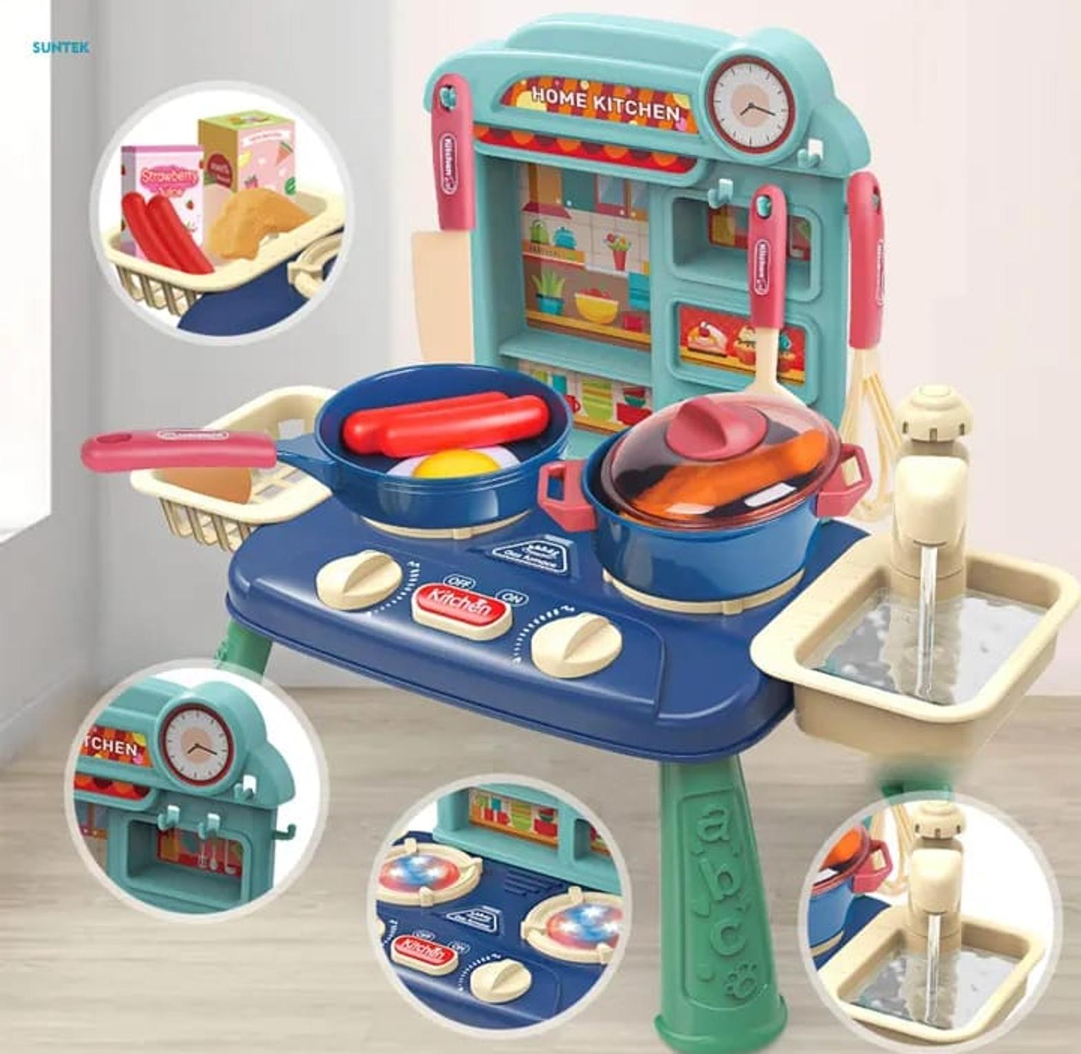 27PCS KITCHEN SET : with sound and light, Interesting sounds simulate cooking and cooking sound effects, . 【Pretend play】: improve color recognition, kitchenware recognition and exercises hand eye coordination ability and the ability of organization and storage. 【Automatic Water Circulation System】: The water sink toy comes with an upgraded real faucet and an automatic water circulation system which helps to save water. 【Educational】: The Cooking Washing can cultivate children's hands on ability, organization and storage ability, and cultivate children's awareness of sharing housework.