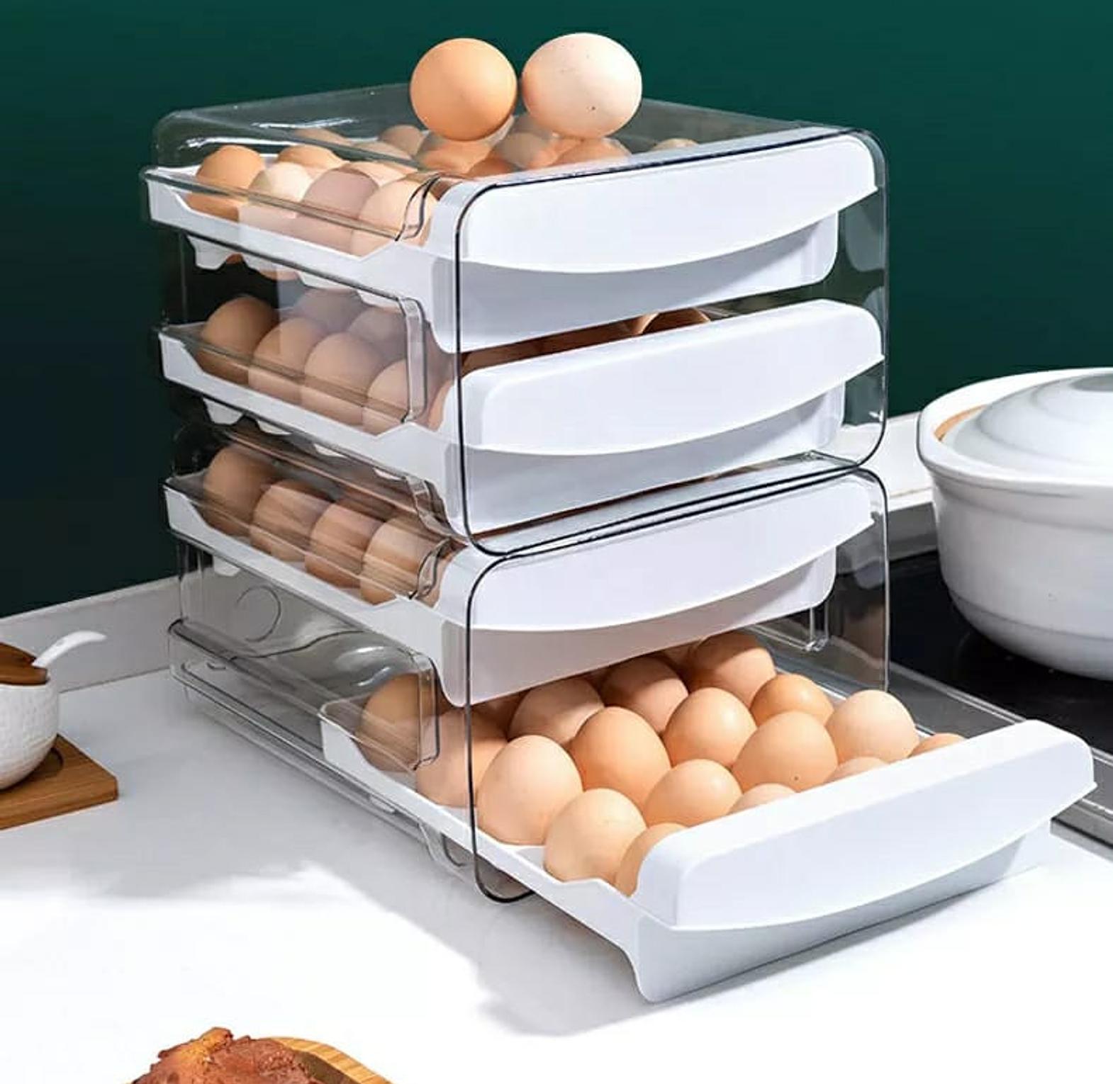 Keep the eggs safe and fresh: with the tapered groove design, each egg is placed separately to protect the eggs from collision or cracking, and the placed eggs have a longer shelf life. This classy egg storage box has good air permeability and allows your eggs to be stored for longer time. Transparent shell design makes this egg storage box can facilitate you to check the number of eggs remaining. Using PET and PP, this product is durable, and shockproof. The length of the product is 24cm, the width is 21cm, and the height is 14cm. It has a long lasting preservation with a lid. - Plastic egg storage box holds up to 32 eggs at one time , cover locks tight
