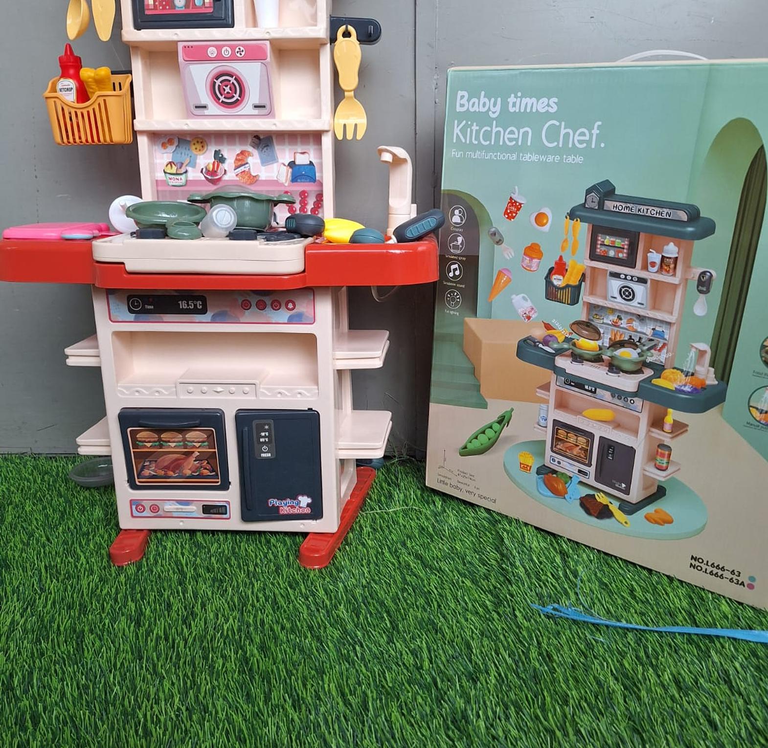 This is a children's role-play kitchen playset designed to encourage imaginative play and skill development. It features various realistic elements to mimic a real kitchen environment. This is a kitchen toy set for toddlers, children, little boys and girls, giving a real sense of the kitchen environment. 4. Safe to Play: The toy set is made of environmentally friendly plastic, non toxic and harmless, smooth and burr free, durable and reliable, and can be used with confidence. 5.