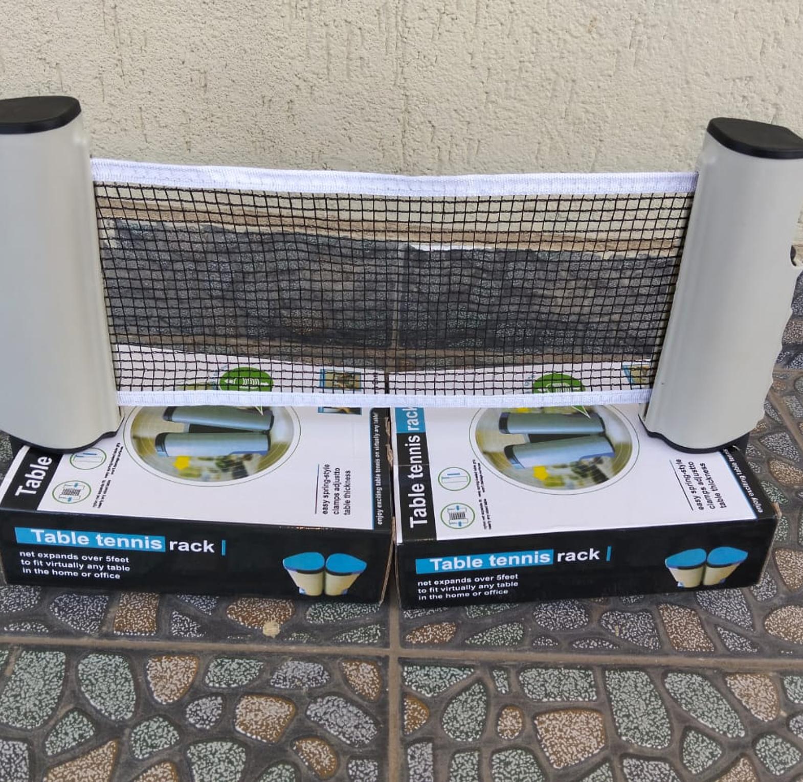 This is a table tennis net, specifically the AKTIVE 52488 model. It is designed to be easily attached to a table, converting it into a ping pong table for recreational play. The net's function is to provide a barrier over which the ping pong ball must pass during a match. It is designed to allow the ball to bounce on either side of the table, not to roll over onto the receiver's side