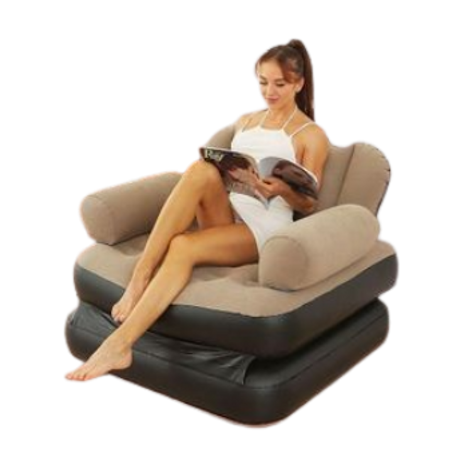 This type of inflatable furniture is designed for versatility, functioning as a sofa, lounge chair, recliner, or even a bed, making it suitable for both indoor and outdoor use. It typically features a sturdy coil-beam construction and is made from durable PVC material, sometimes with a flocked surface for added comfort.