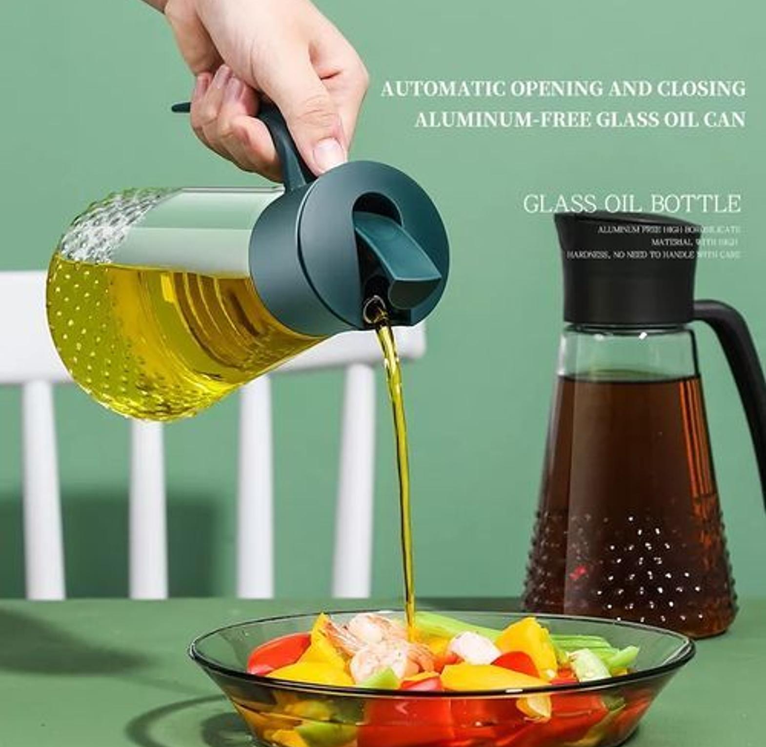 The flip lid with stainless steel roller will open automatically when the bottle is tilted, and close when upright, allows for easy, one-handed pouring. PRECISE-POUR AND NON-DRIP SPOUT: The U-shaped spout enables you fully control over pouring exactly the right amount of oil, no need to worry about an overdressed salad; oil won't drip or leak from the spout, keeps the bottle and countertop clean. WELL MADE FROM SAFE MATERIAL: Made of food grade BPA free and lead-free glass, this oil bottle is well built to last. The pear shaped glass bottle is thick and sturdy, with silicone sealed gasket inside the cap to avoid leakage and spillage, ensure the freshness of liquid stored. ESSENTIAL KITCHEN DISPENSERS AND BEST GIFT: Ideal for dispensing liquid condiments such as olive oil, vinegar, soy sauce, syrup, cooking wine and more. Elegant appearance makes a wonderful addition to your kitchen or restaurant! Make your order online today at Vicmer Store and it will be delivered right at your doorstep