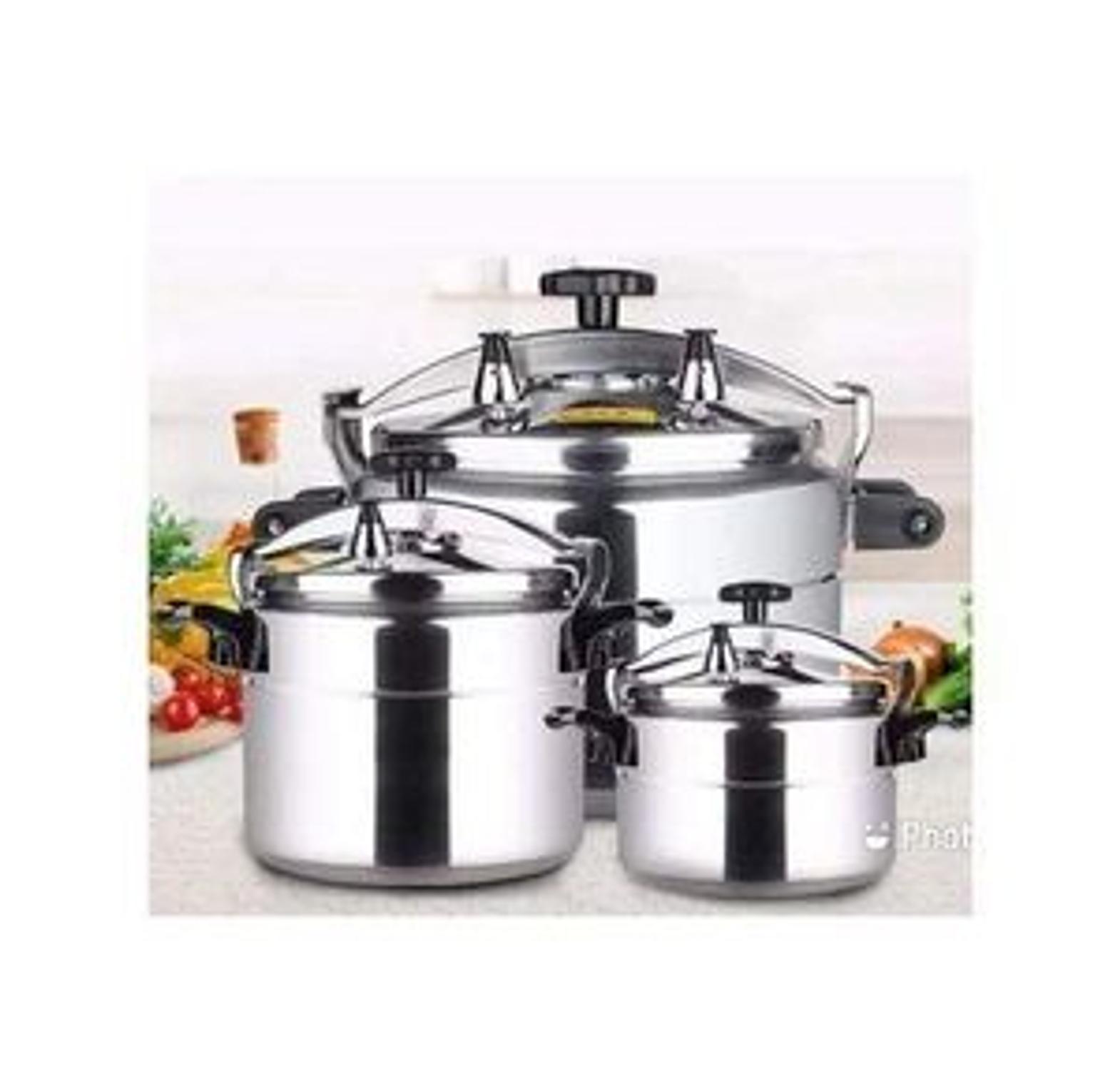 This pressure cooker likely has two handles. This can provide better balance and stability when lifting and maneuvering the cooker, especially when it's full of food. The pressure cooker is designed with safety features to prevent explosions or accidents. Modern pressure cookers typically include safety mechanisms such as pressure release valves, locking lids, and overpressure plugs to ensure safe operation.