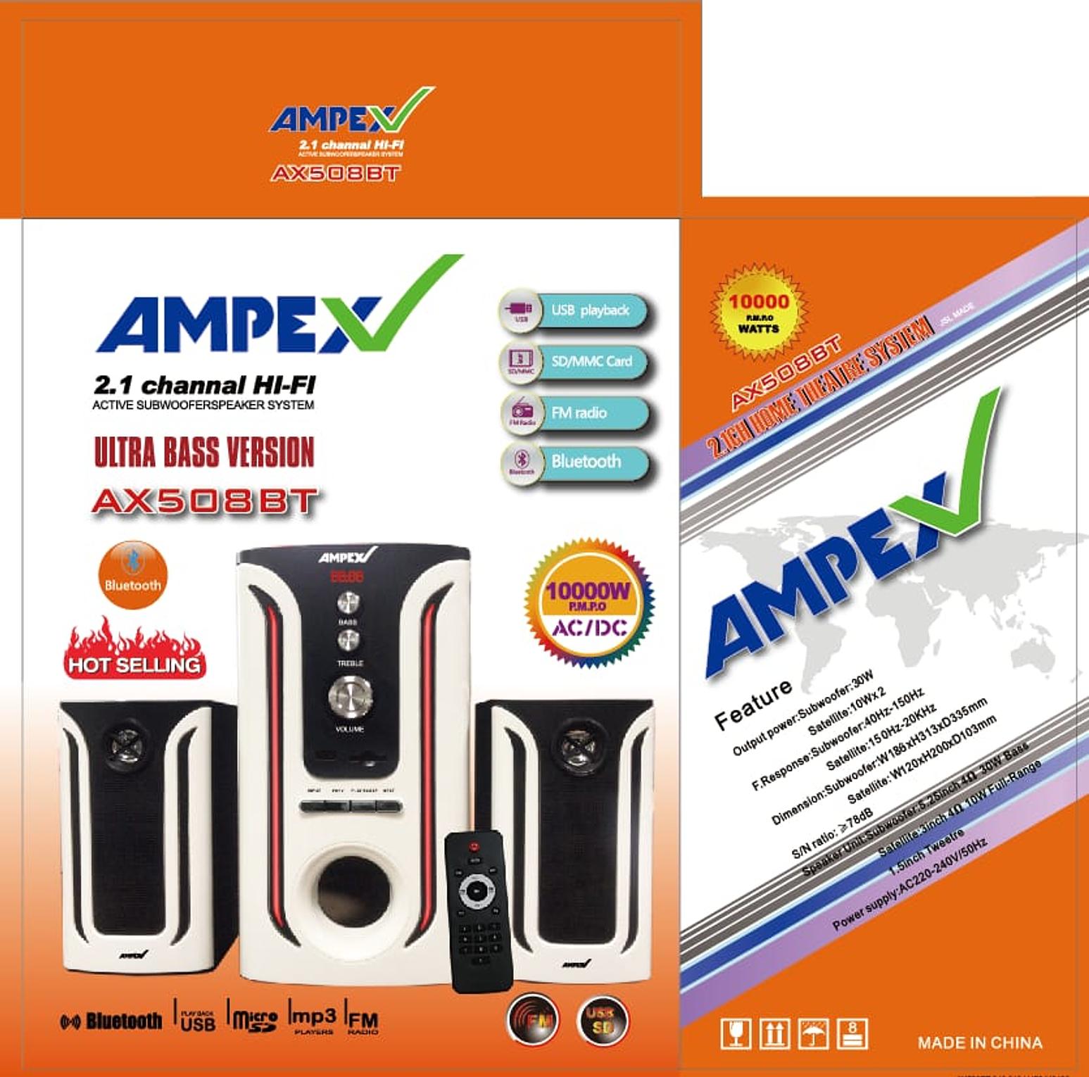 Ampex 2.1 AX 508 BT Subwoofer With Bluetooth/USB/SD/FM 10000Watts