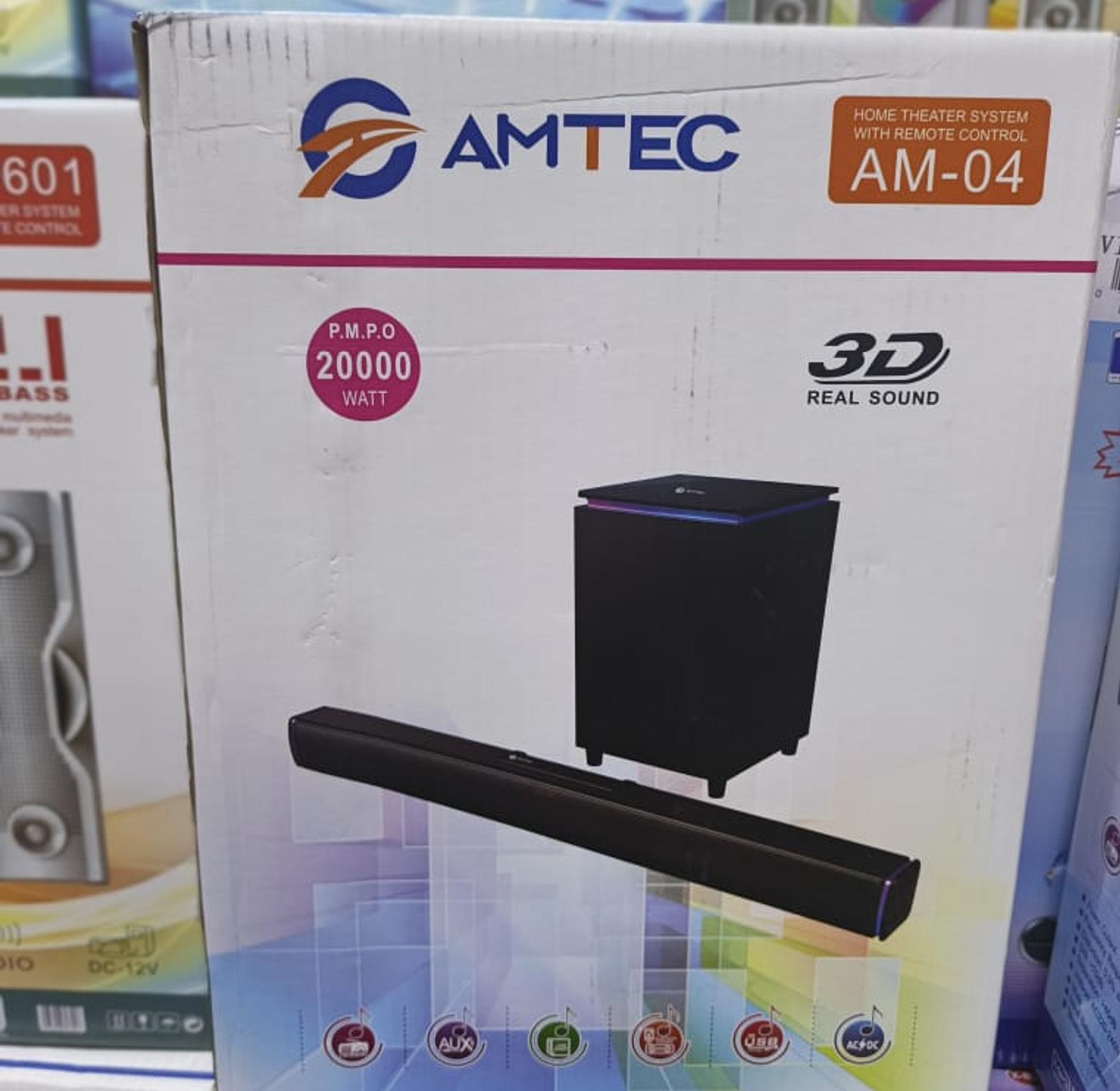 System Type: Home theater system with a soundbar and a powerful subwoofer. Power Output: P.M.P.O 20000 Watts. Some sources indicate a powerful 100W output for the soundbar. Sound Features: 3D Real Sound, Dynamic Bass Boost for enhanced low-frequency response.
