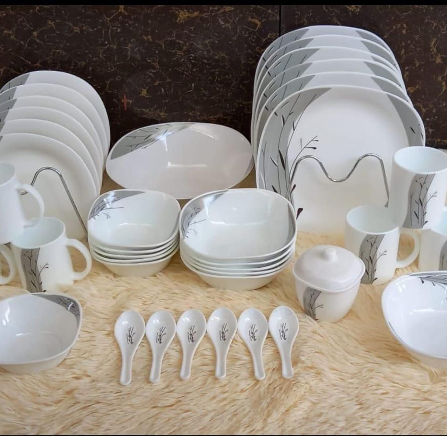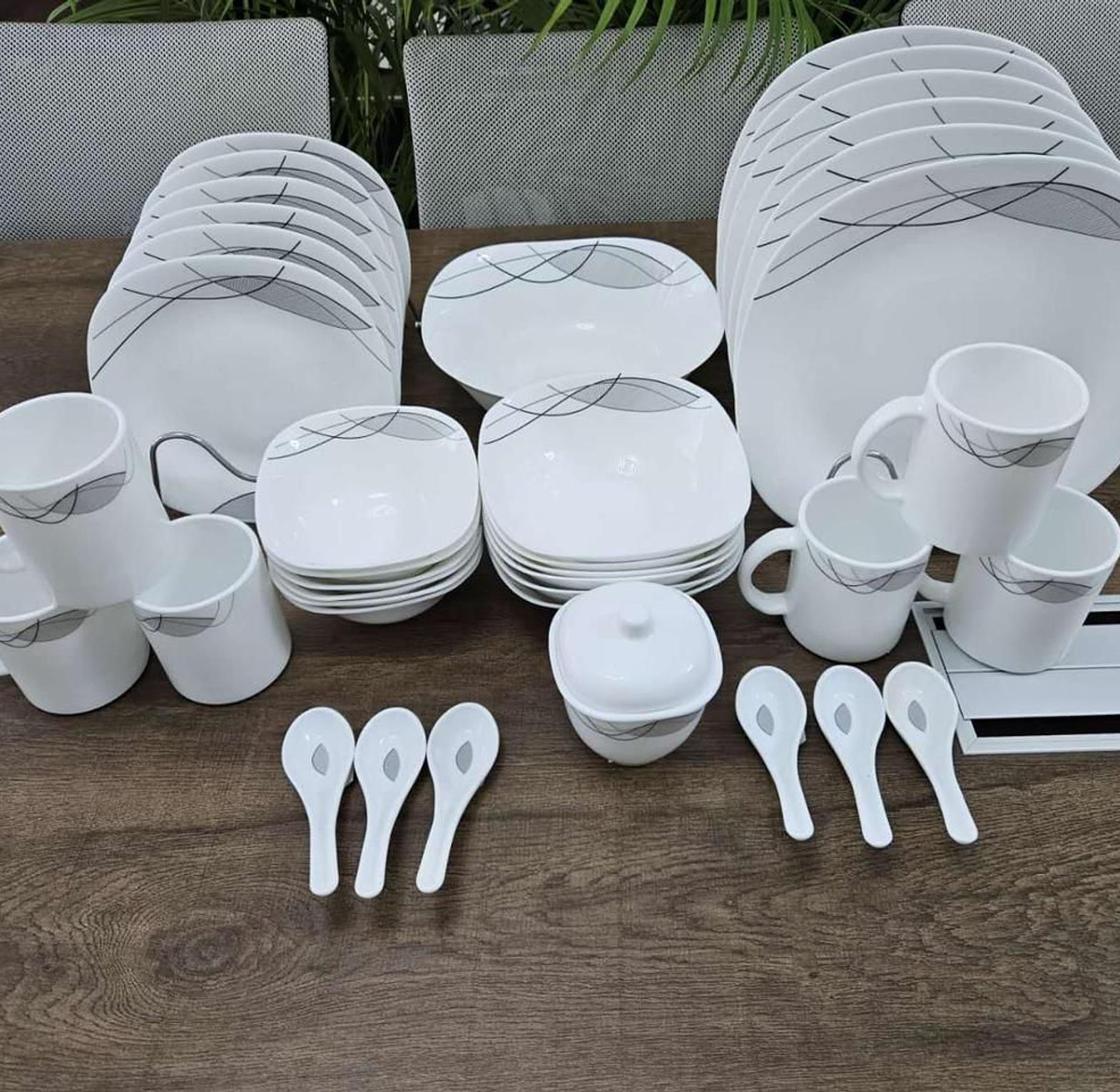 ▶️6PCS DINNER PLATES(11.5”) ▶️6PCS QUARTER PLATES(8.5”) ▶️6PCS MUGS(32Cl) ▶️6PCS SOUP SPOONS ▶️ 6PCS VEGETABLE BOWL(5.5”) ▶️6PCS MULTIPLE BOWLS(7.5”) ▶️1 SERVING BOWL(9.5”) ▶️1 CANDY POT(300ml)