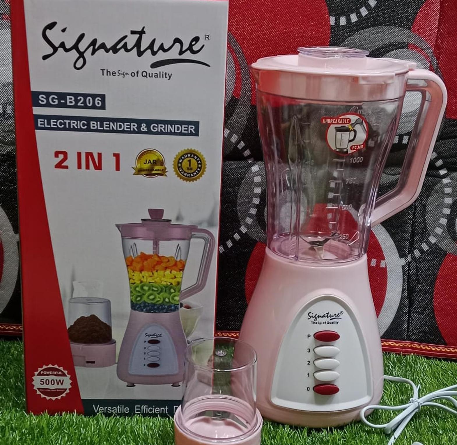 signature 2 in1 blender is one among the most loved on in today modern kitchen for the best and most effective blending experience. It has strong blends that is hard to break and also consumes less power hence its power saving hence cut down the cost of power, its economical, the blends are easy to relave and adjustable to give you the desired blending. This is a quality blender for your home use and you will never be disappointed. you can start your journey of having great blending experience for your juices and making smoothies for babies. Mixer blender Unbreakable jar Multi purpose. Soft design Stainless steel knife Safety device Simply place your order here today and have Vicmer Store deliver right at your doorstep.