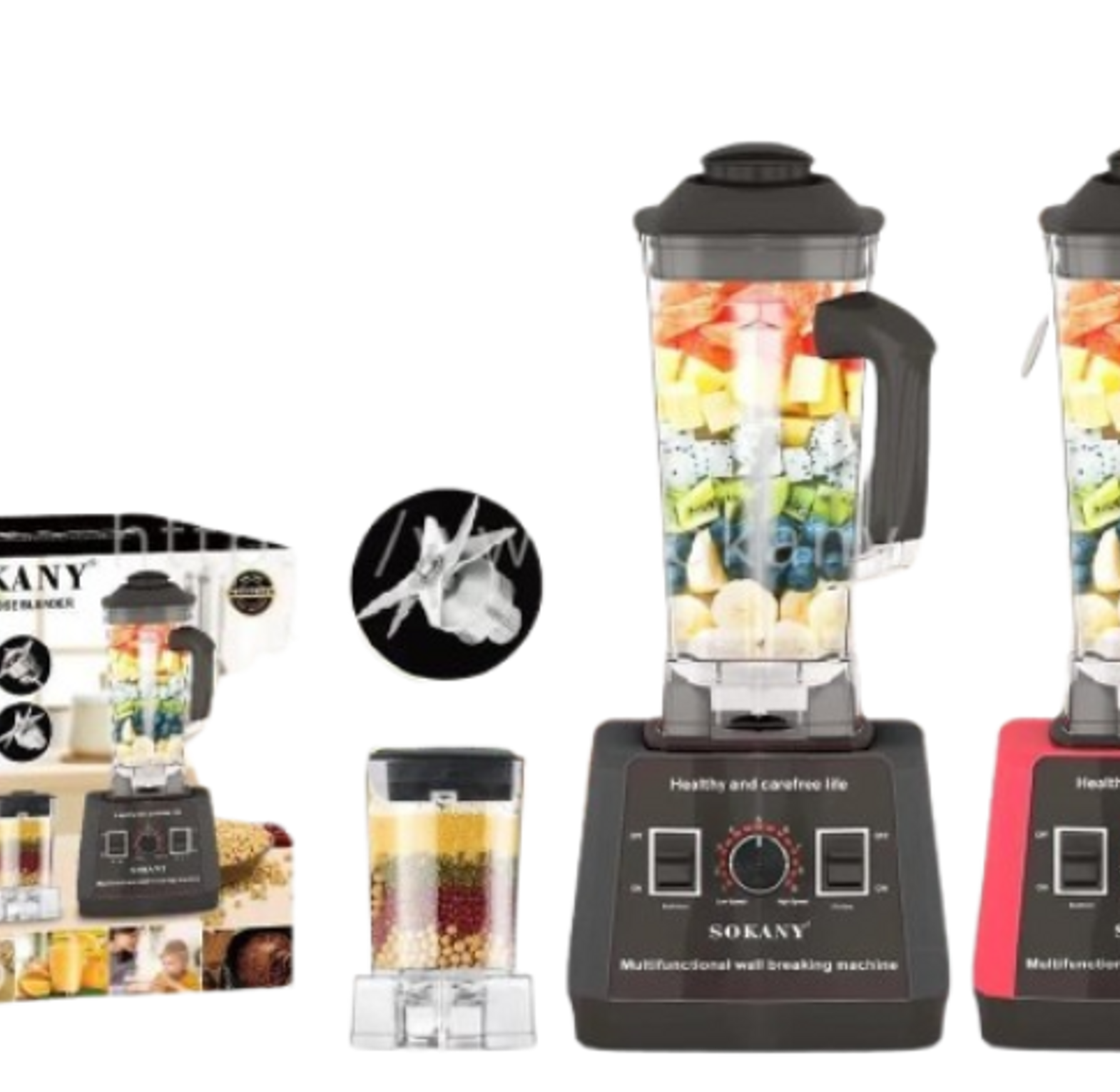 The Sokany SK-666 Professional Commercial Blender is a heavy-duty 5000W appliance with a 2.5L unbreakable jar, designed for both home and commercial use. It supports multiple functions including juicing, crushing ice, dry grinding, stirring, egg beating, milkshake preparation, and mixing, making it a versatile addition to any kitchen. The hardened stainless steel blades, powered at 32,000 RPM, deliver smooth and consistent blending results, while the food-grade rubber lid with a removable plug allows easy addition of ingredients during use. Its transparent jar features clear measurements for precise portioning, and the soft non-slip handle ensures comfort and control. For added convenience, the blender is equipped with spill-proof vents for hot and cold preparations, non-slip foot pads for stability and noise reduction, and a self-cleaning function that completes in under a minute with warm water and detergent